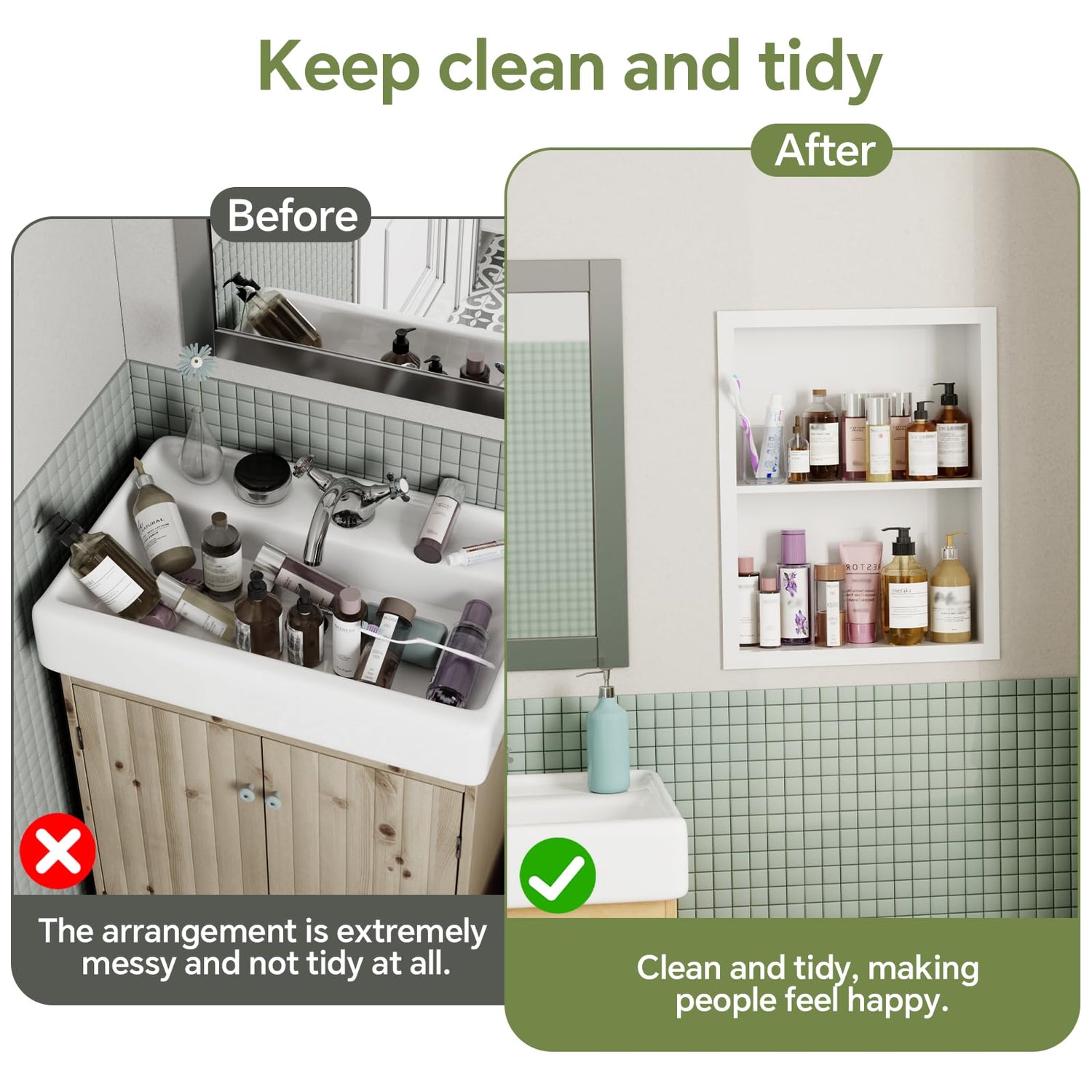 - Durable Wall Niche: The cabinet is designed with multiple shelves, providing ample storage space for bathroom supplies, medicines, cosmetics, and other small items, helping you maximize the use of every inch of space.