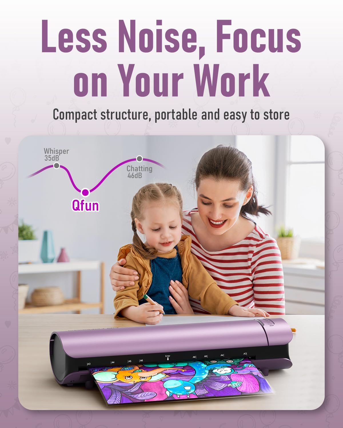 - No More Worries About Paper Jams: Are you worried about important projects being damaged by the laminater? Equips with 2 anti-stick coating rollers and precise temperature control system, Qfun laminator resolve your concerns. Ensure that it is not easy to happen paper jam, even if the operation error leads to paper jam, it can avoid the film melting on the roller and causing the machine to be scrapped. How to solve paper jam? Turn off it, push the ABS to remove the misfed items