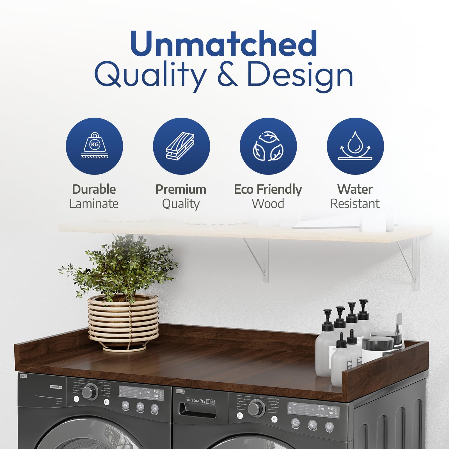 - Scratch and Water-Resistant Laminate Finish: The laminate surface is scratch-resistant and durable, providing a sleek and easy-to-maintain laundry countertop over washer and dryer units.
