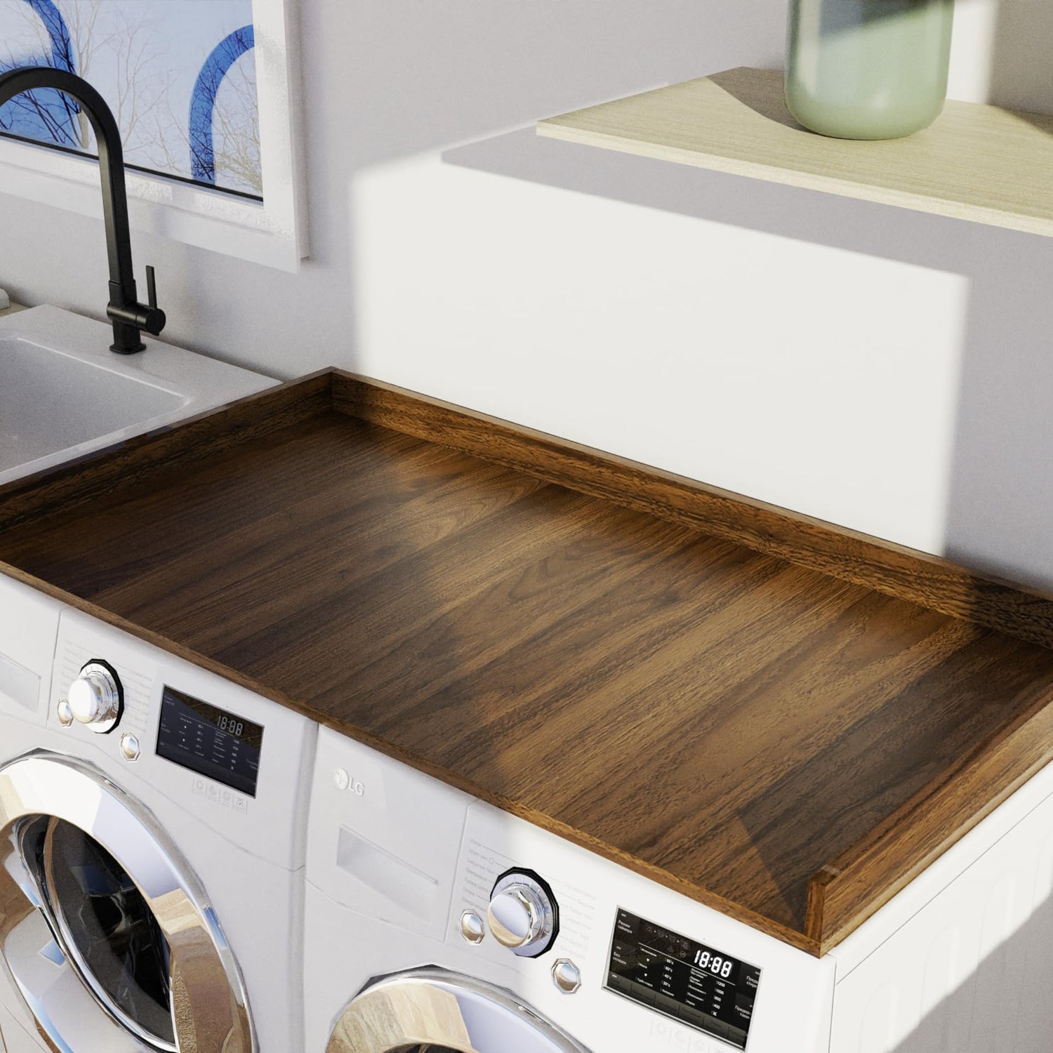 OfficeSimpli Washer Dryer Countertop, Made in USA, Non-Slip Pads, Laundry Room Wood Topper, Washer Dryer Cover for Top, Laundry Guard, Laundry Countertop (California Walnut, Standard (27.5" x 54"))