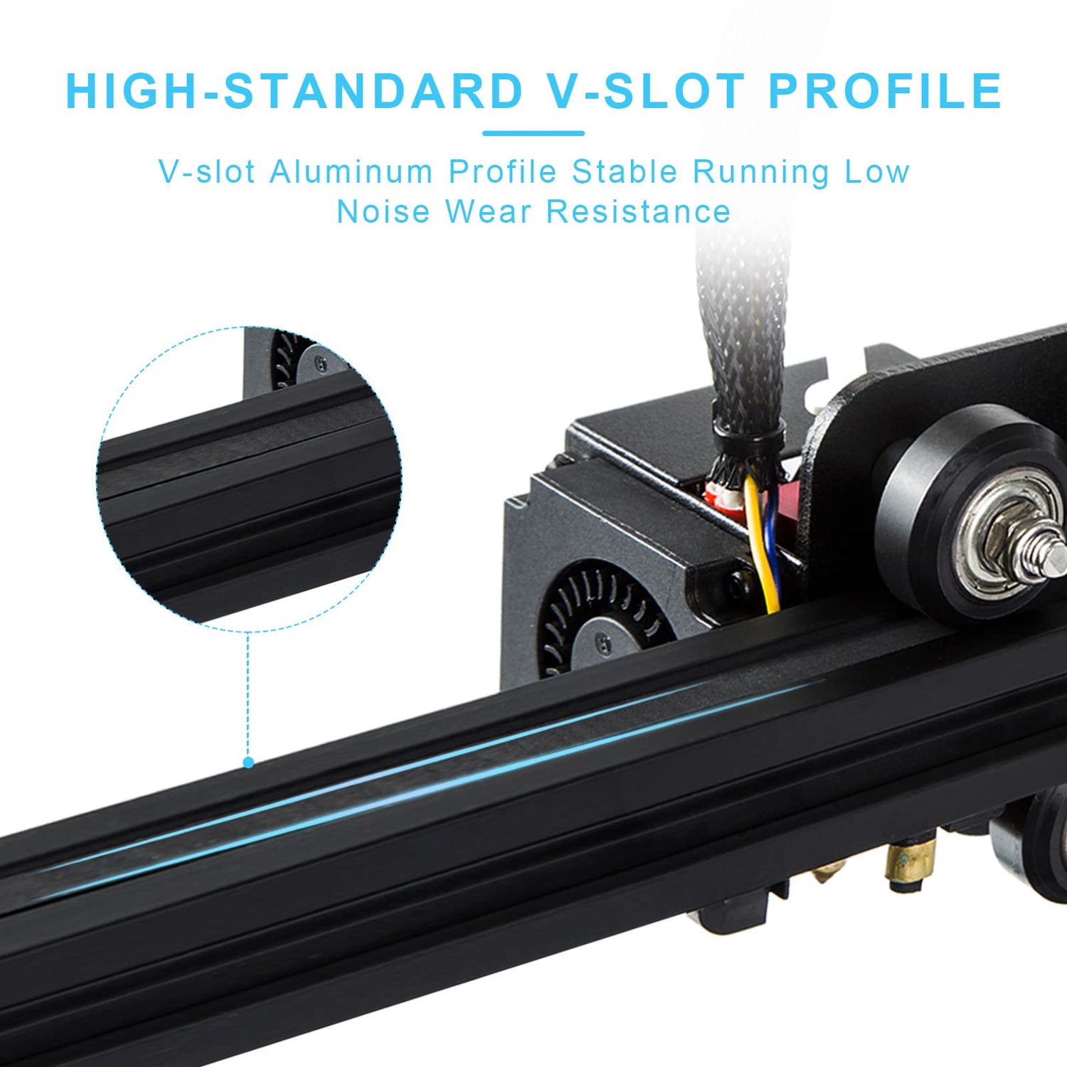 Details: Open Source Hardware Association Certified: The Ender-3 is the first truly Open Source printer to come out of China. All hardware CAD files, board schematics and firmware files are available and updated on our GitHub page. This ensures regular updates and the latest features from a large and active community of users. China's First Truly Open Source Printer- Certified by the Open Source Hardware Association. Machine parameters Modeling Technology:FDM (Fused Deposition Modeling) Printing Size: 8. 6x8. 6x9. 8 inches 220*220*250mm Resume Print capable: Yes. Should your printer experience an unexpected power outage, the upgraded control board will resume print from the last recorded position before the outage. No more failed prints and wasted filament! Sleep easy while your printer works hard. Max Traveling Speed:180mm/s Filament:1. 75mm PLA Input:AC 100-265V 50-60Hz Output DC 24V 15A 360W Layer Height:0. 1-0. 4mm Nozzle diameter:0. 4mm Precision:0. 1mm File Format:STL, OBJ, G-Code Working Mode:USB cable (included) online compatable, or micro-SD (offline) Max Nozzle Temperature:255℃ Max Hot bed Temperature:110℃ Machine Size: 17. 3x16. 1x18. 3 inches 440*410*465mm Package weight: 19 lbs 8. 6kg