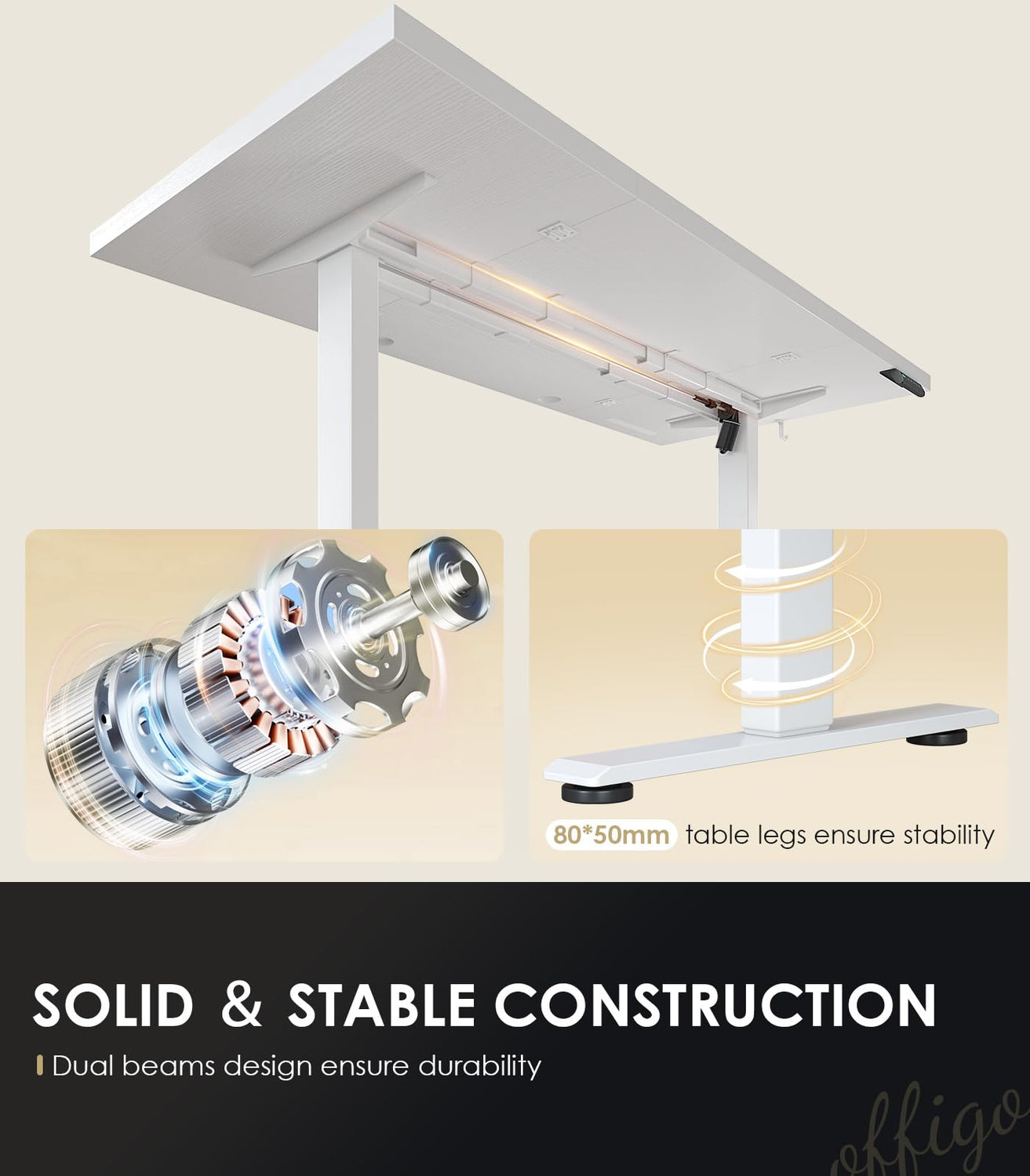 - Sturdy Construction: The sit stand desk features an industrial-grade steel frame that ensures excellent durability while supporting more weight. The dual beam structure design and 80*50mm table legs has better stability, making the lifting more smooth