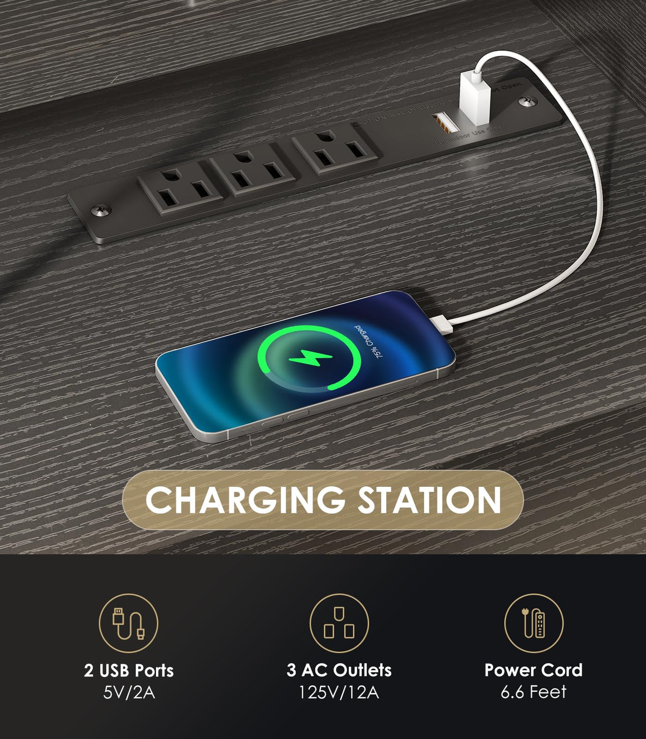 - Electric Height Adjustment: The height adjustable U-shaped stand up desk allows you to customize height from 28.4" to 46.5" by using the 3 preset electric buttons for optimal comfort. It equipped with 3 Outlets & 2 USB ports, providing convenient charging options for devices at work or play