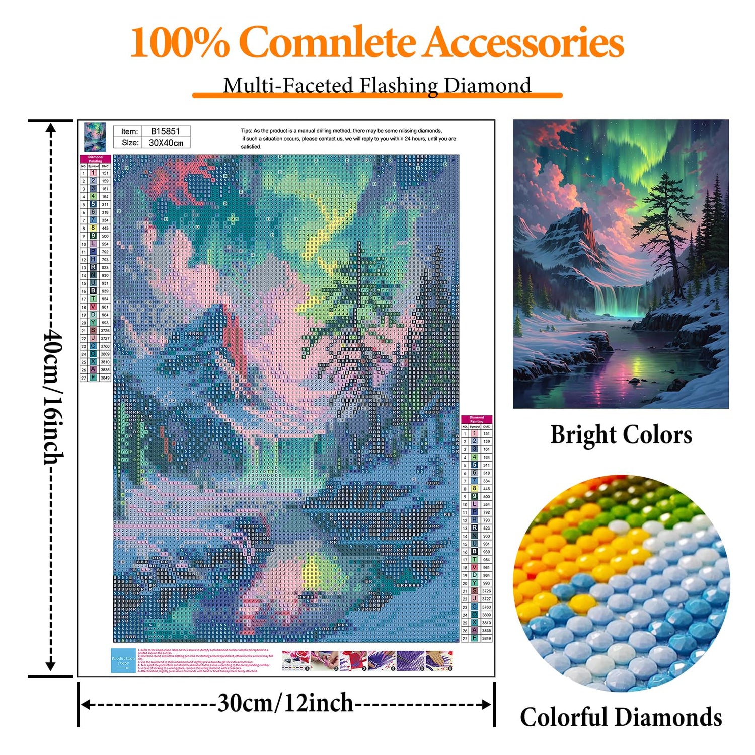 - 💎【Easy To Read】Our aurora diamond painting's numbers and symbols are clear and easy to read. And each painting with diamonds is given an extra 30% dots to prevent loss in the process. Don't worry and just enjoy your fun.