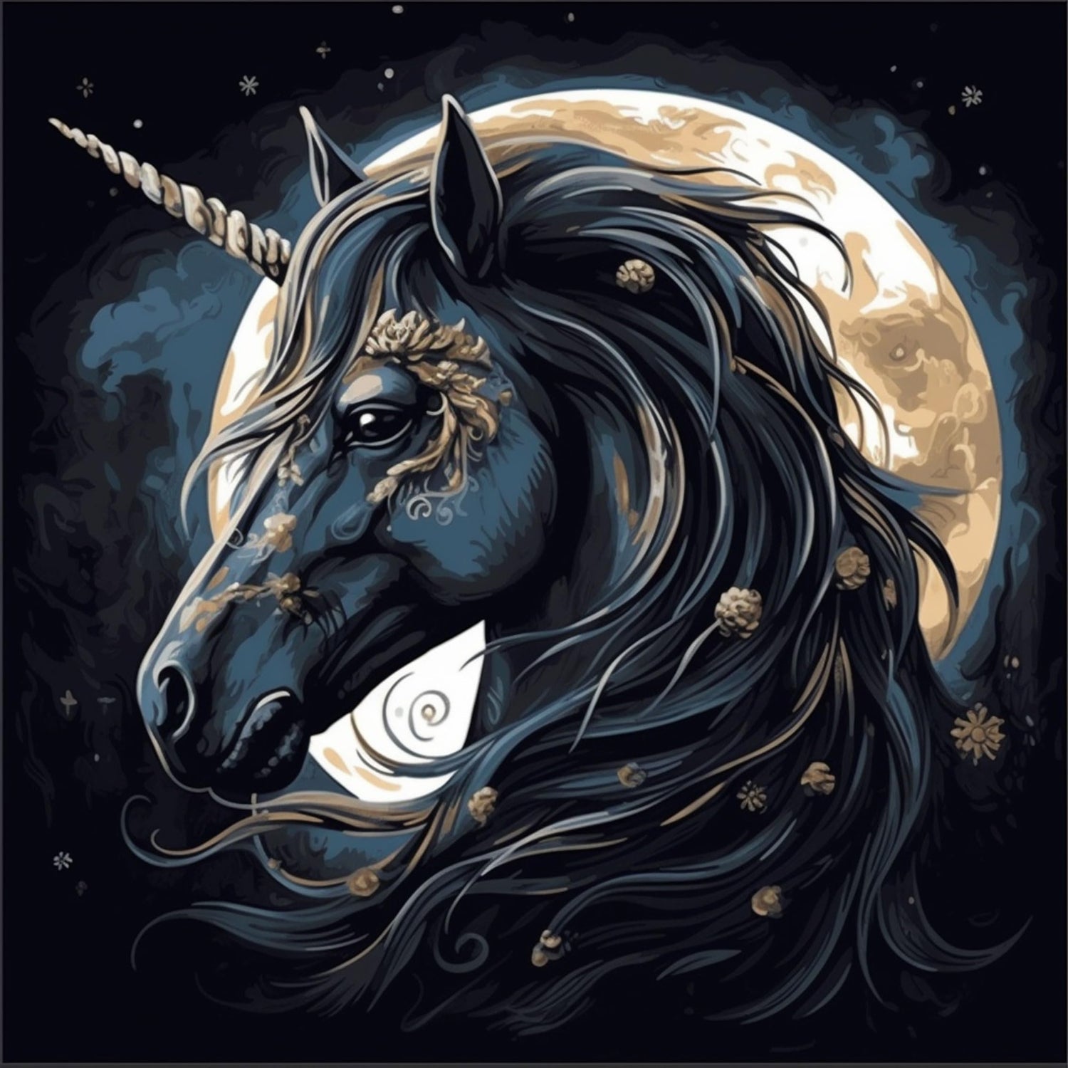 OfFsum Paint by Numbers Black Unicorn Head Super Moon 03 for Adults and Kids DIY Oil Painting Gift Kits Pre-Printed Canvas Art Home Decoration 16x20 inch Frameless