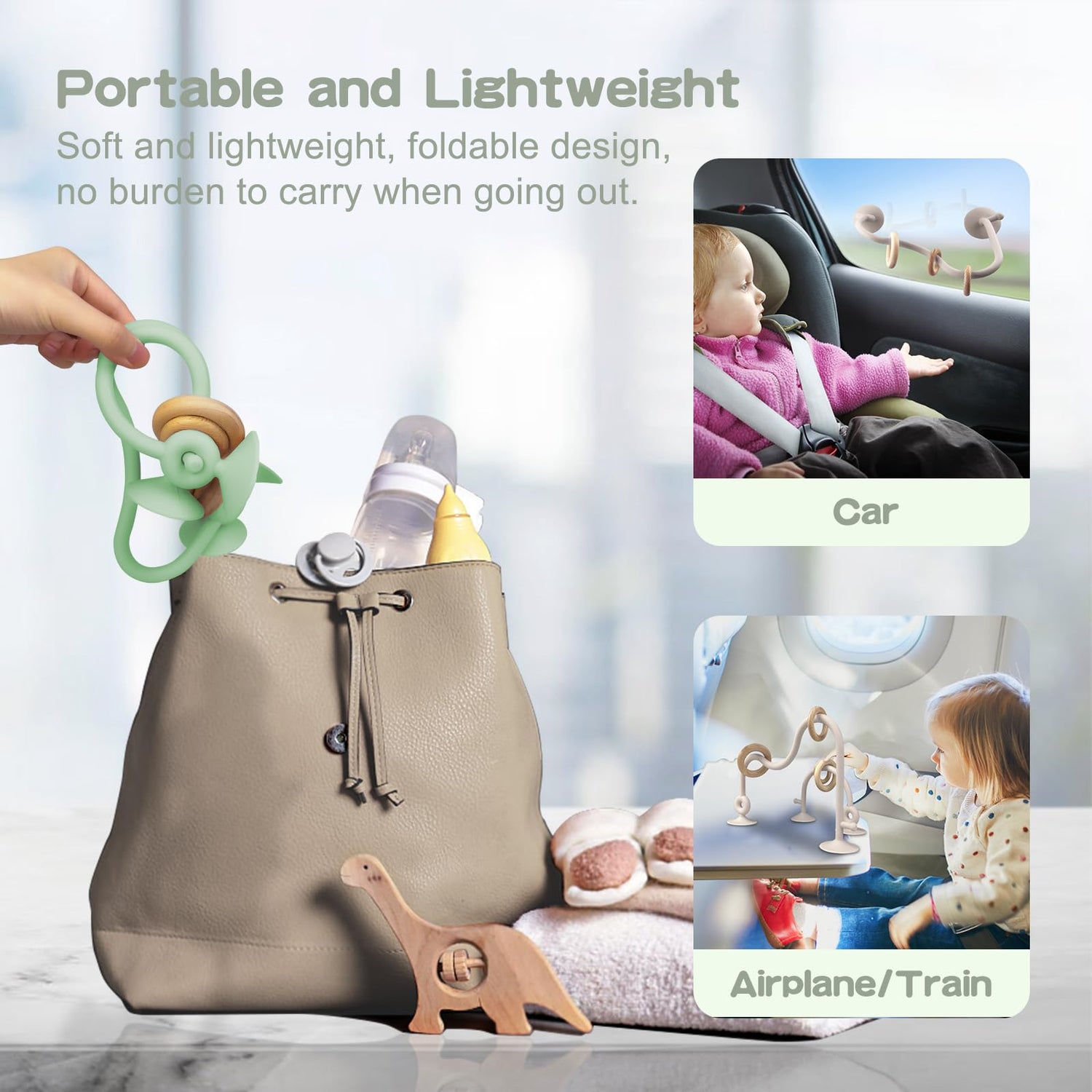- 【Powerful Suction, No Fear of Pulling】Our high chair suction cup toys are made with a new suction cup process with powerful suction, which can be firmly fixed on high chairs, tables or any smooth surfaces, babies can't pull them off easily. The roller coaster design of these Montessori toys allows baby to move the loops from one end to the other, and the sound of the loops crashing together keeps baby focused and happy. Let parents easily get rid of the worry of throwing toys!