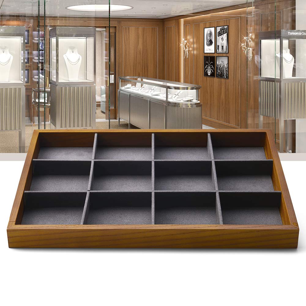 Oirlv 12 Grids Wood Jewelry Organizer Tray Stackable Jewelry Drawer Tray Bracelet/Watch Showcase Display Storage(Grey)