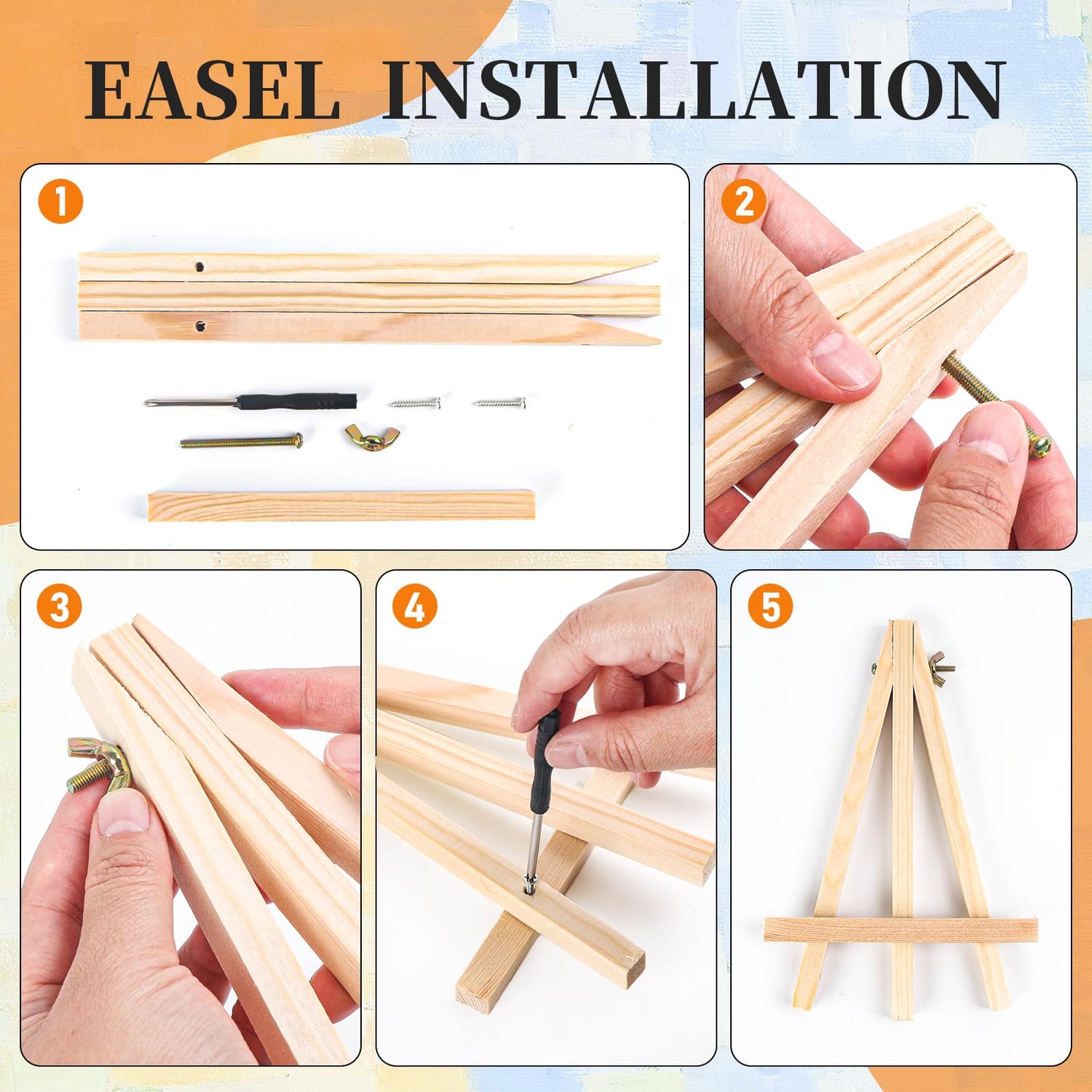 - 4 Pack Paint by Numbers with Frame Includes: 4 * HD color canvas with frame, 1 * wooden easel, 4 * acrylic paint set, 12 * wooden paint brushes, 8 * wall-mounted hooks & screws, 4 * color postcard, 4 * paper copy of pre-printed canvas and 1 * exquisite gift box.