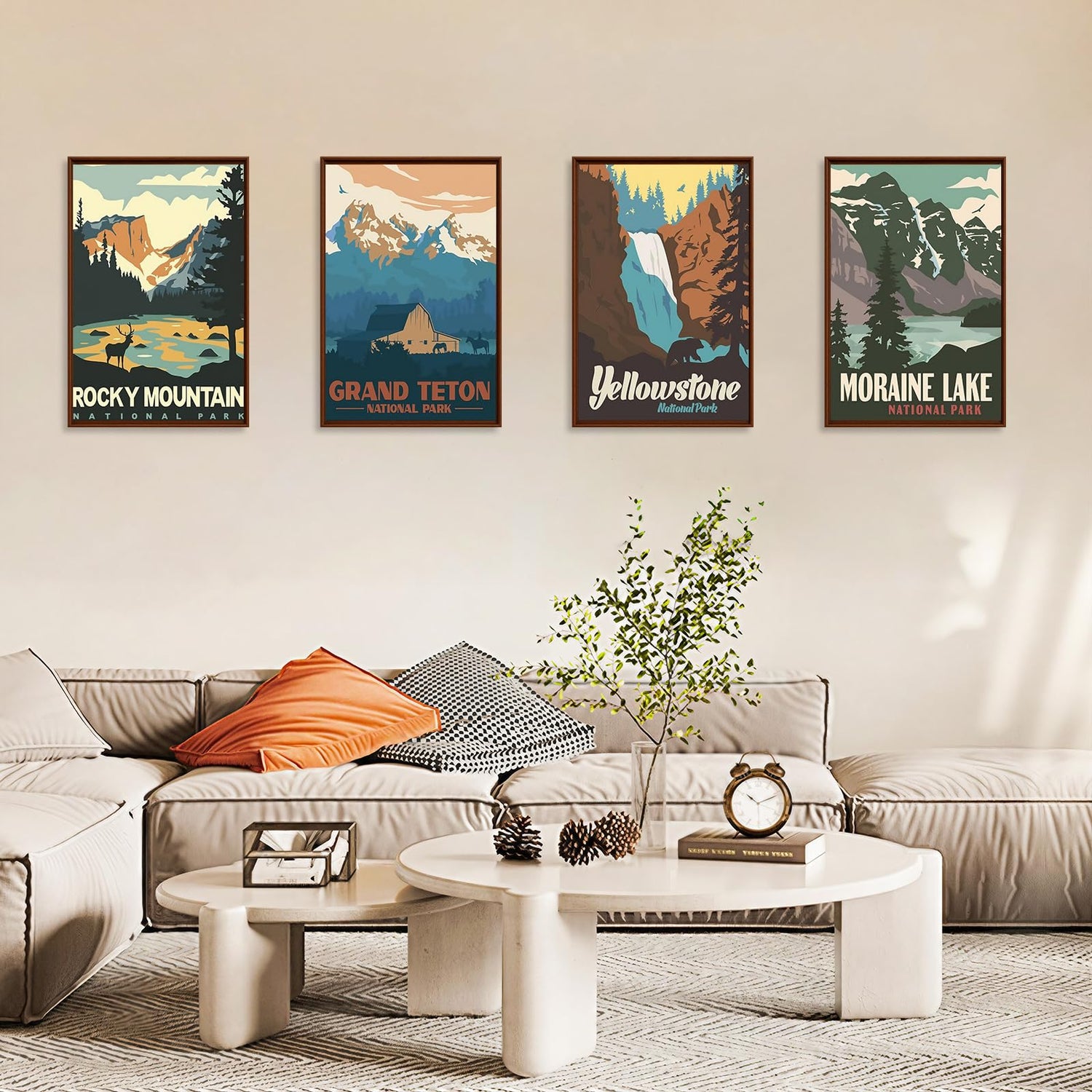 Okarina 4 Pack Paint by Numbers Kit for Adults with Frame National Park, Framed Paint by Number for Adults Beginner with Wooden Easel, DIY Painting by Numbers Canvas Framed for Home Decor 8 x 12 Inch