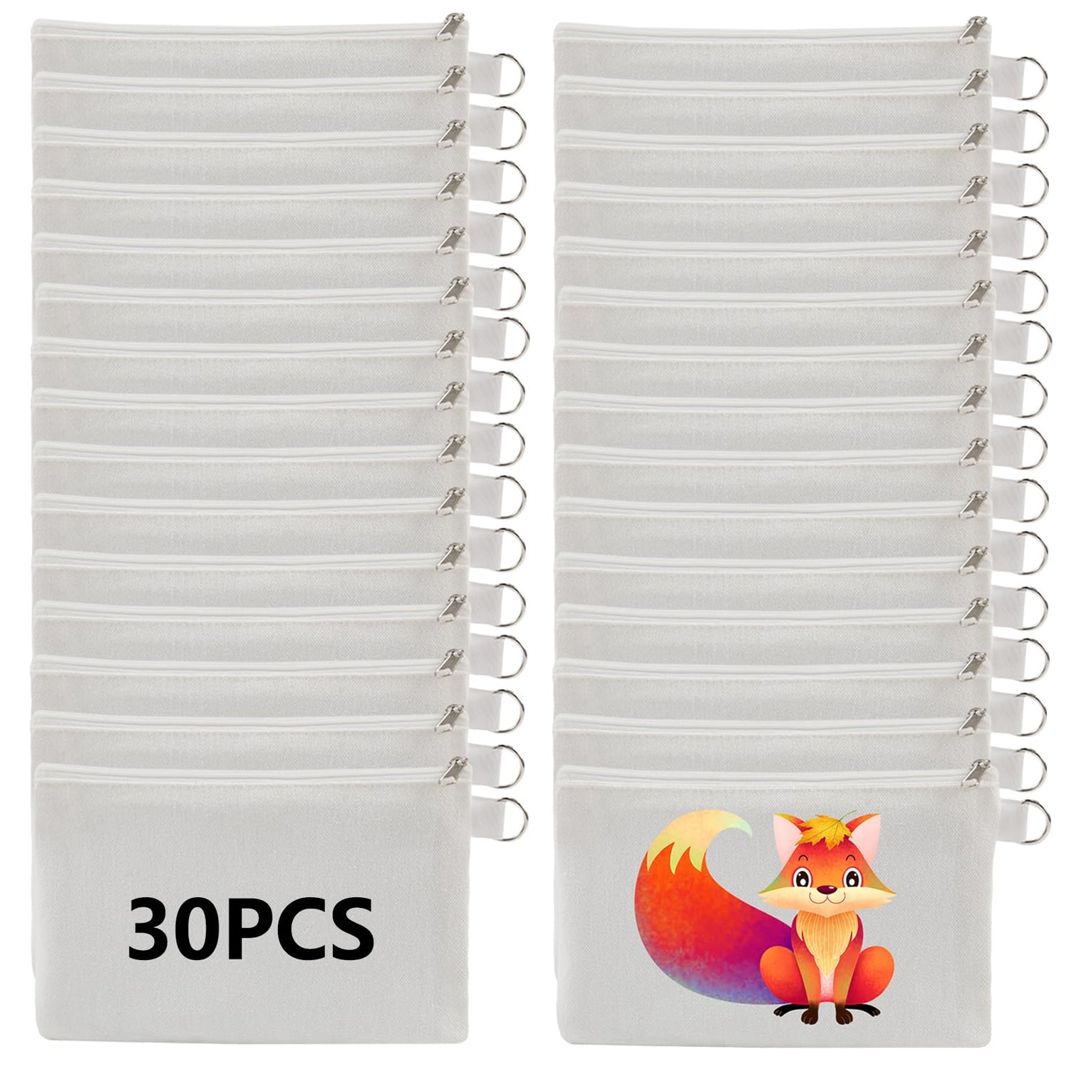OKBA 30 pcs Sublimation Blanks Makeup Bags Bulk,canvas White Bag,polyester tote bags for sublimation DIY Craft