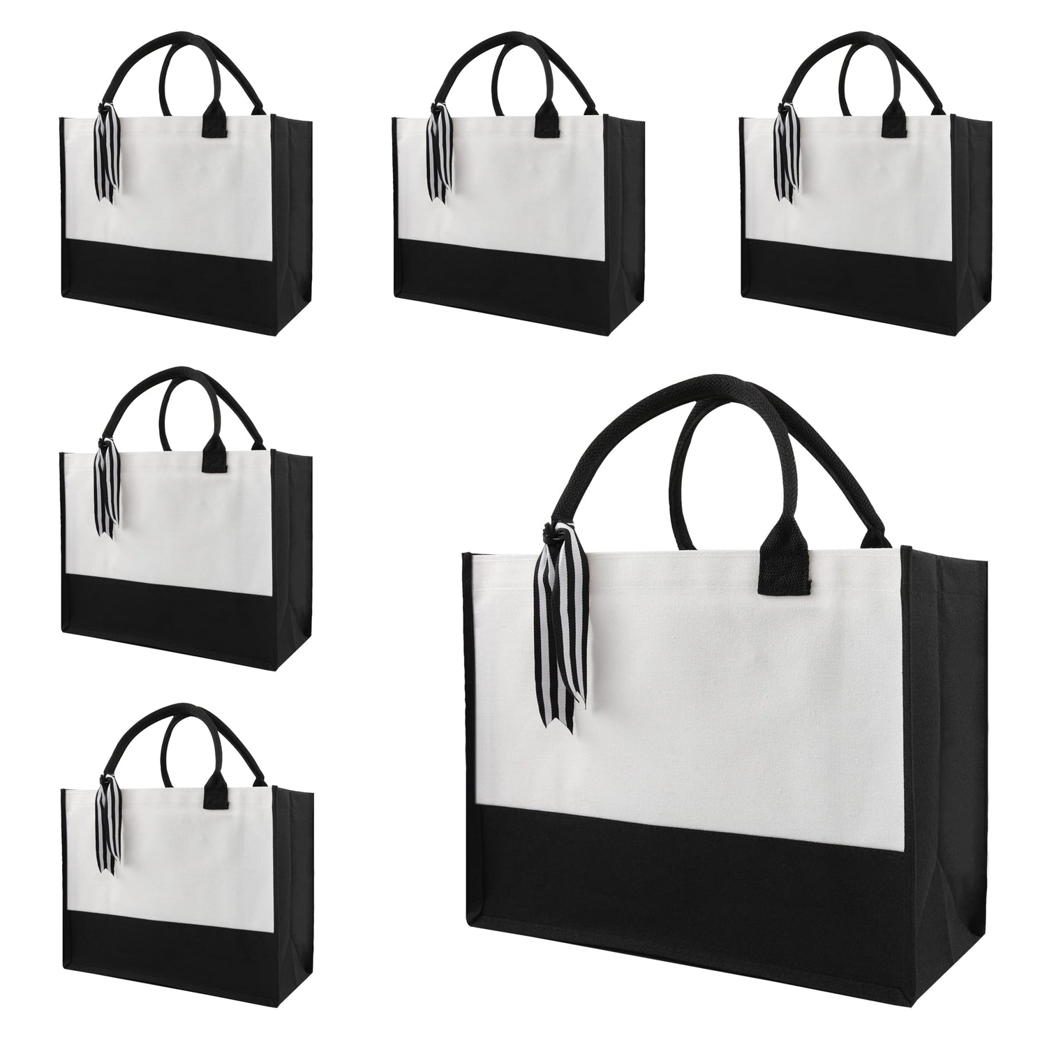 OKBA 6 PCS classic black and white canvas tote bags, DIY personalized blank beach shopping bag for women, Mom, friend gift (Tote Bag *6pcs)