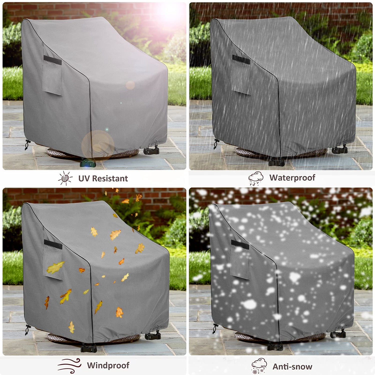• Waterproof Heavy Duty Outdoor Chair Covers: High density heavy duty waterproof material with water repellent processed and has great tear resistance and fade resistance to make the cover more durable. The NEW generation patio chair cover keeps your chair dry and clean all year round.