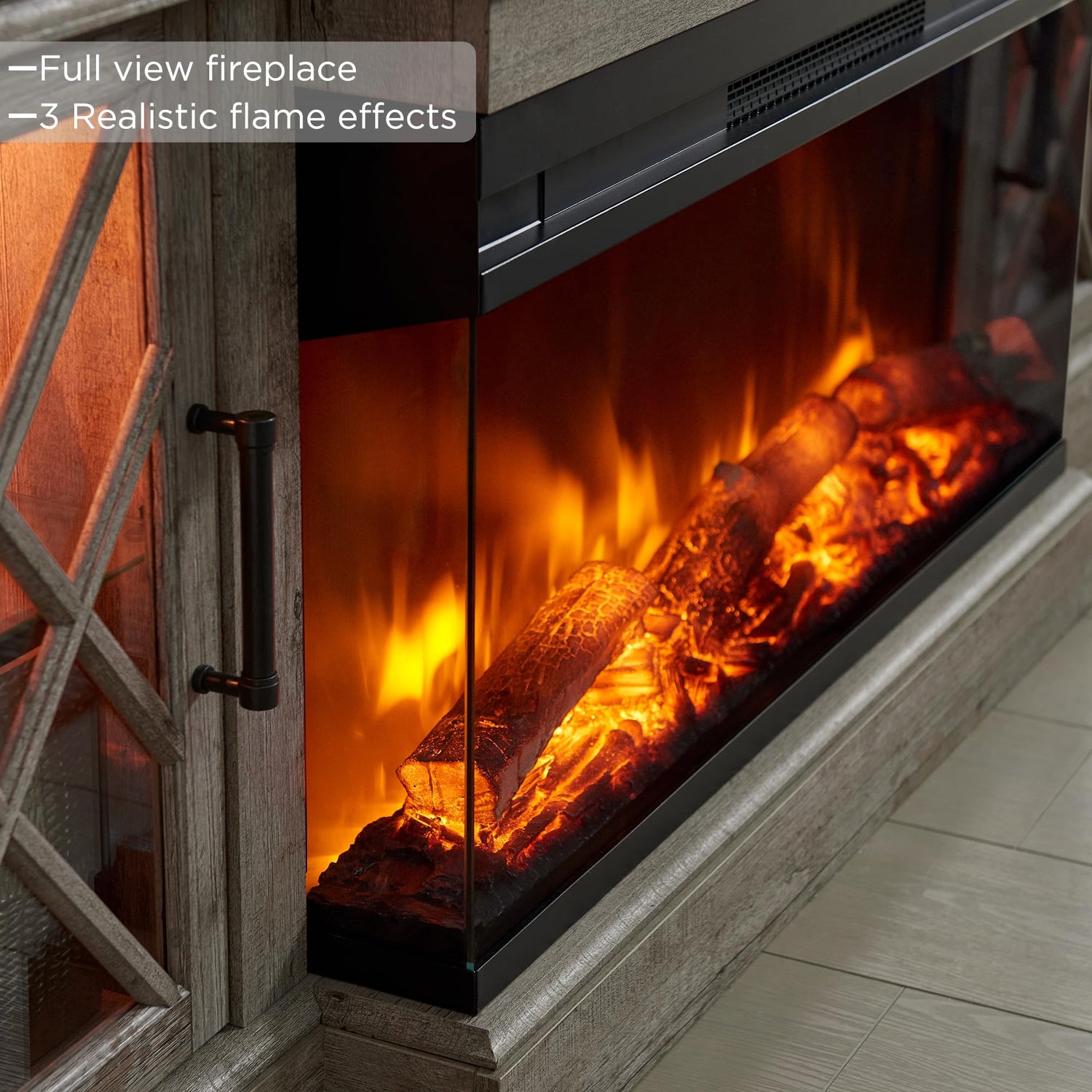 - Safe and Durable It boasts double top panels and a thickened base for long-term sturdiness, Holds up to 300 lbs with ease. High-quality metal handles and hinges offer a cushioned anti-pinch function. Rest easy with our Fireplace Safety Guarantee, featuring overheat protection and ETL/FCC certifications. Elevate your home with this reliable and chic addition!