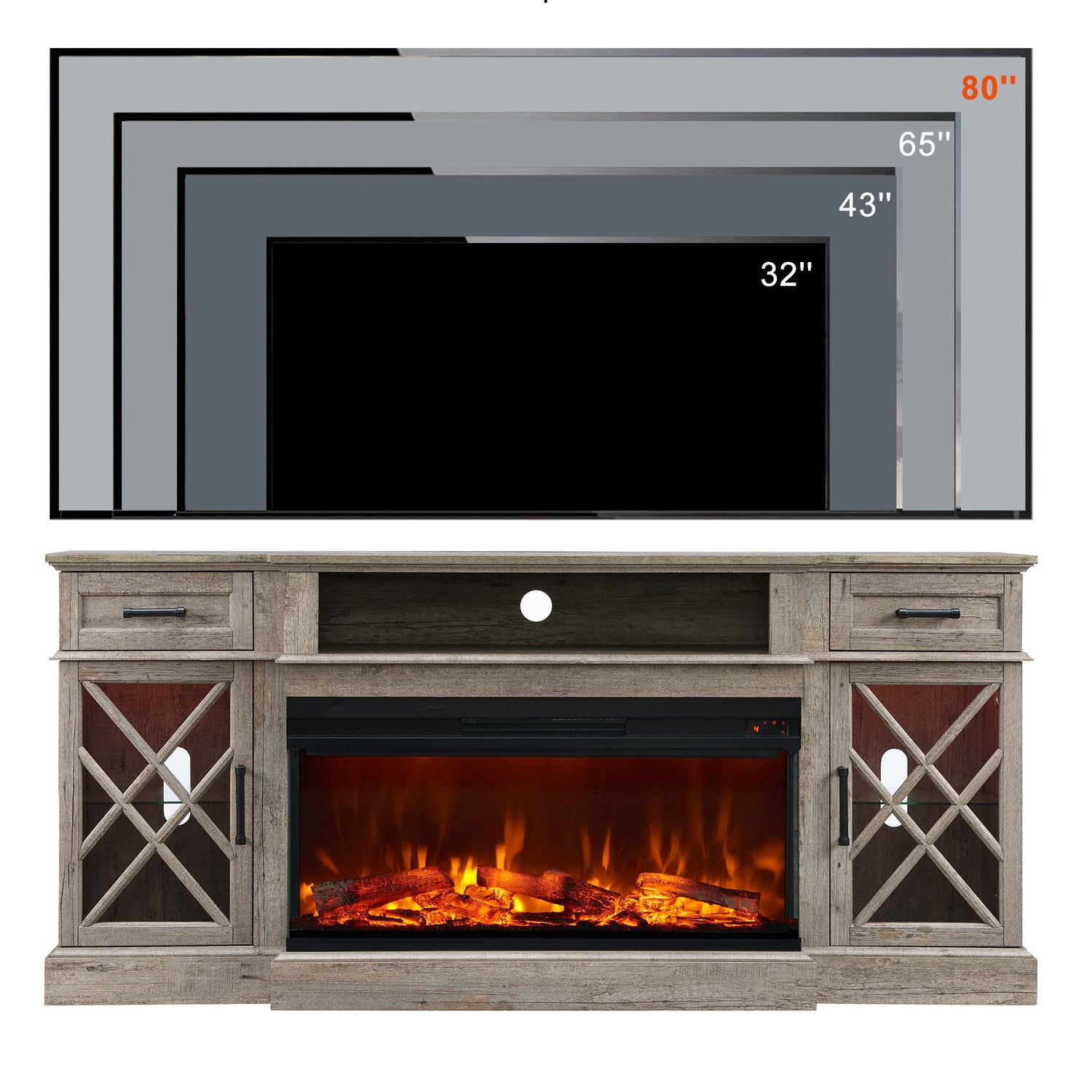 - Aesthetic Excellence Crafted with precision and an eye for elegance, our farmhouse TV stand effortlessly complements various interior styles. Whether your space boasts a classic, contemporary, or eclectic vibe, our fireplace TV stand becomes a harmonious addition that elevates your decor.