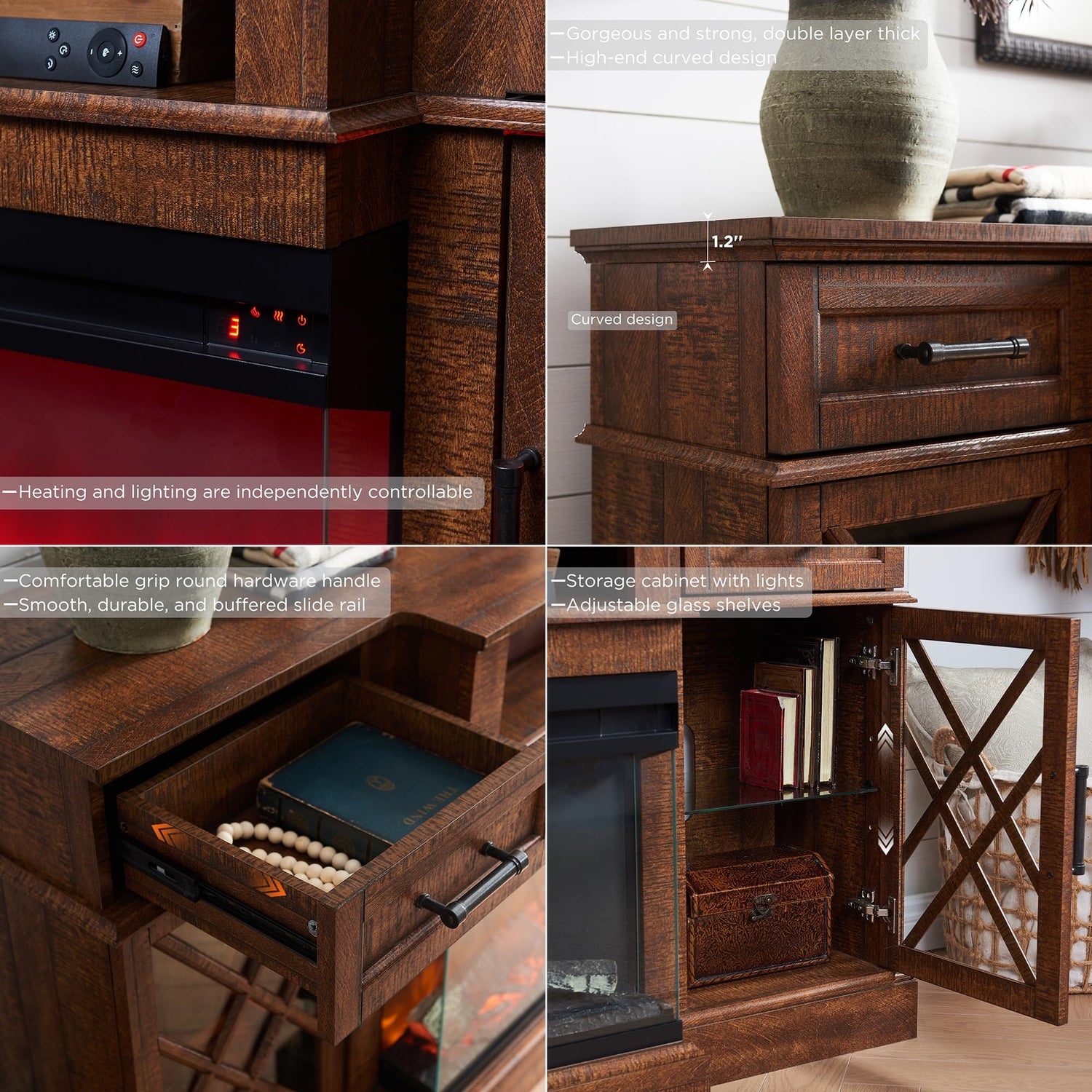 - Aesthetic Excellence Crafted with precision and an eye for elegance, our farmhouse TV stand effortlessly complements various interior styles. Whether your space boasts a classic, contemporary, or eclectic vibe, our fireplace TV stand becomes a harmonious addition that elevates your decor.