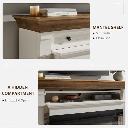 OKD 52 Inch Electric Fireplace with Mantel, Fireplace TV Stand with 36" 3-Sided Glass Electric Fireplace Heater for Living Room (Antique White)