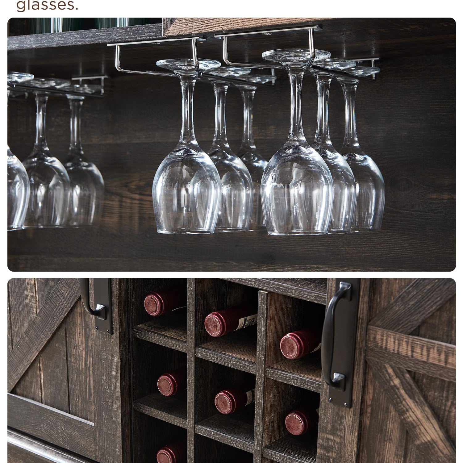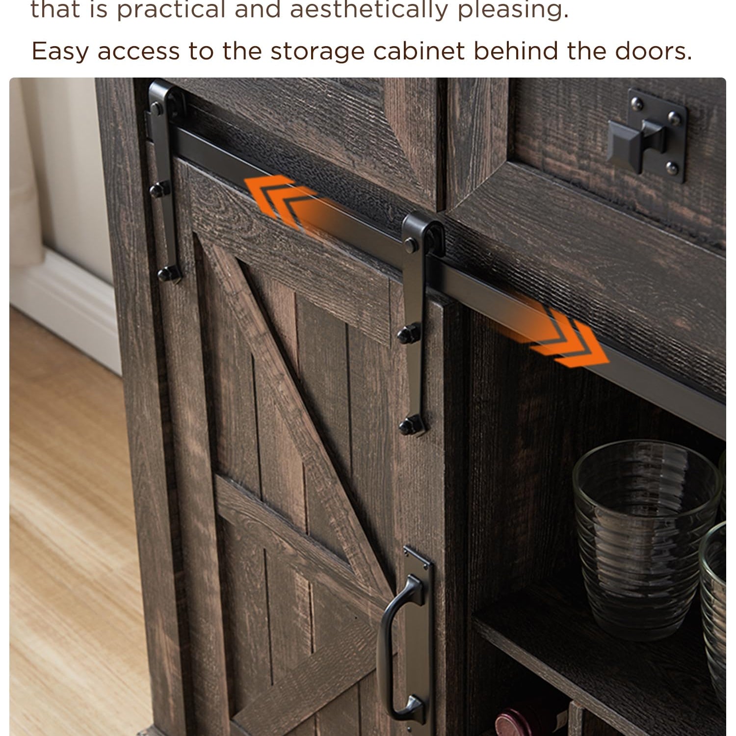 - Farmhouse Home Bar Furniture with Sliding Barn Door: OKD Rustic wine cabinet features two flexible sliding barn doors allow easy access to cabinets and space saving. The sliding door with farmhouse sign create an elegant, farmhouse ambiance in your living space. Flexibly use it as a alcohol cabinet, kitchen pantry, china cabinet, coffee bar station, microwave stand, kitchen cupboard, credenza, storage cabinet.
