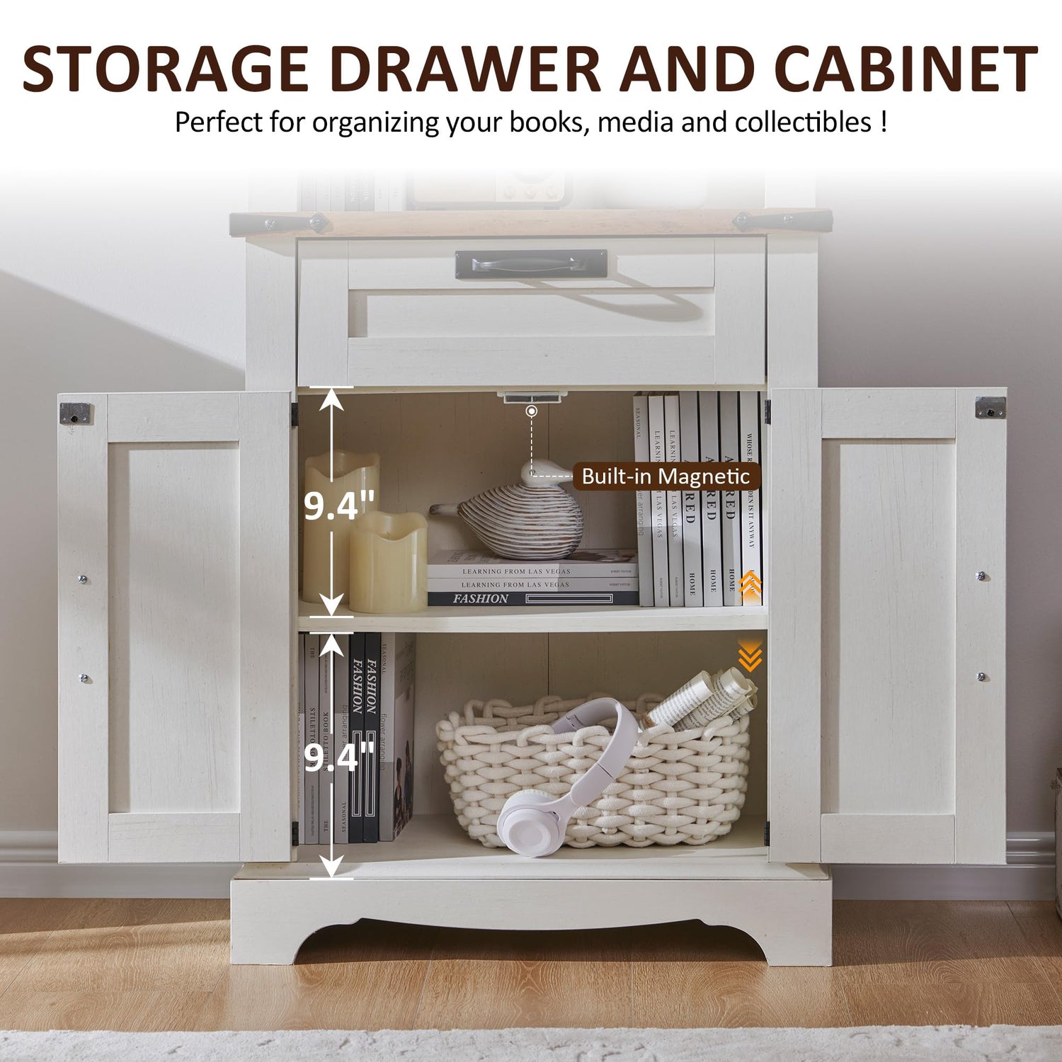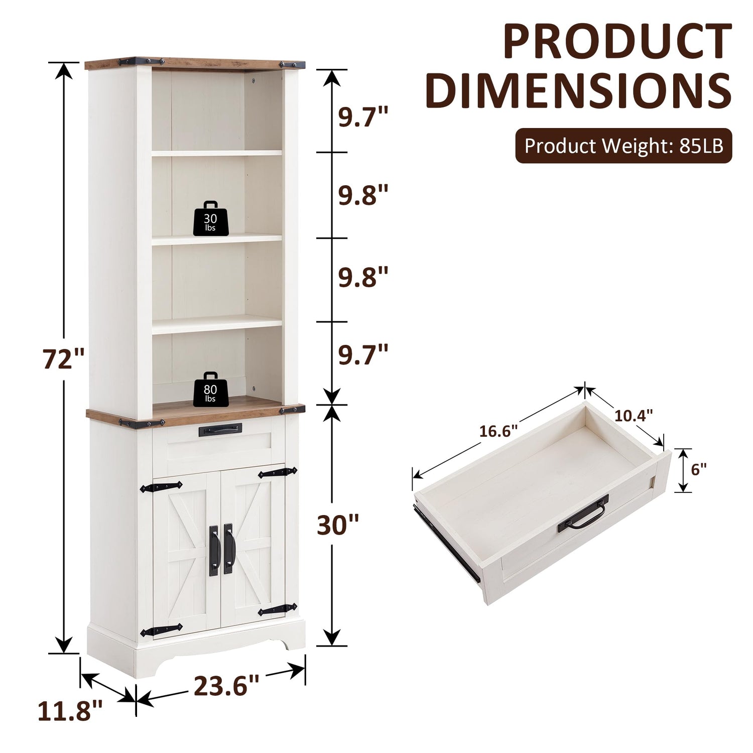 - Large Storage Space: This bookcase with drawer feature with 5 spacious adjustable shelves , 1 drawers and a colsed cabinet with barn door design, providing ample storage for all your books and decor items. Dimensions: 71.4"H x 23.6"W x 11.8"D. Whether in your living room, bedroom, or home office, this white bookshelf with a versatile storage cabinet is the perfect addition to your space