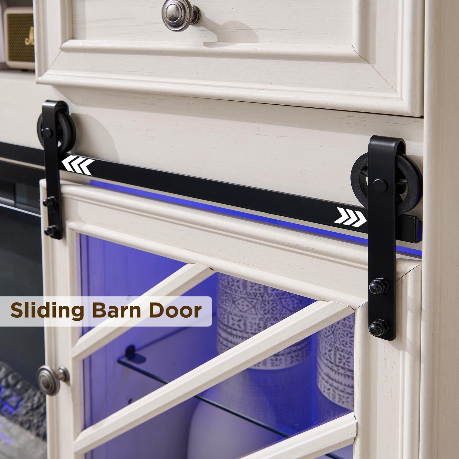 OKD 75” Fireplace TV Stand for 85 Inch TV, Farmhouse Highboy Entertainment Center with 36” Electric Fireplace, Modern Media Console Table with Drawers Storage&Cabinets for Living Room, Antique White