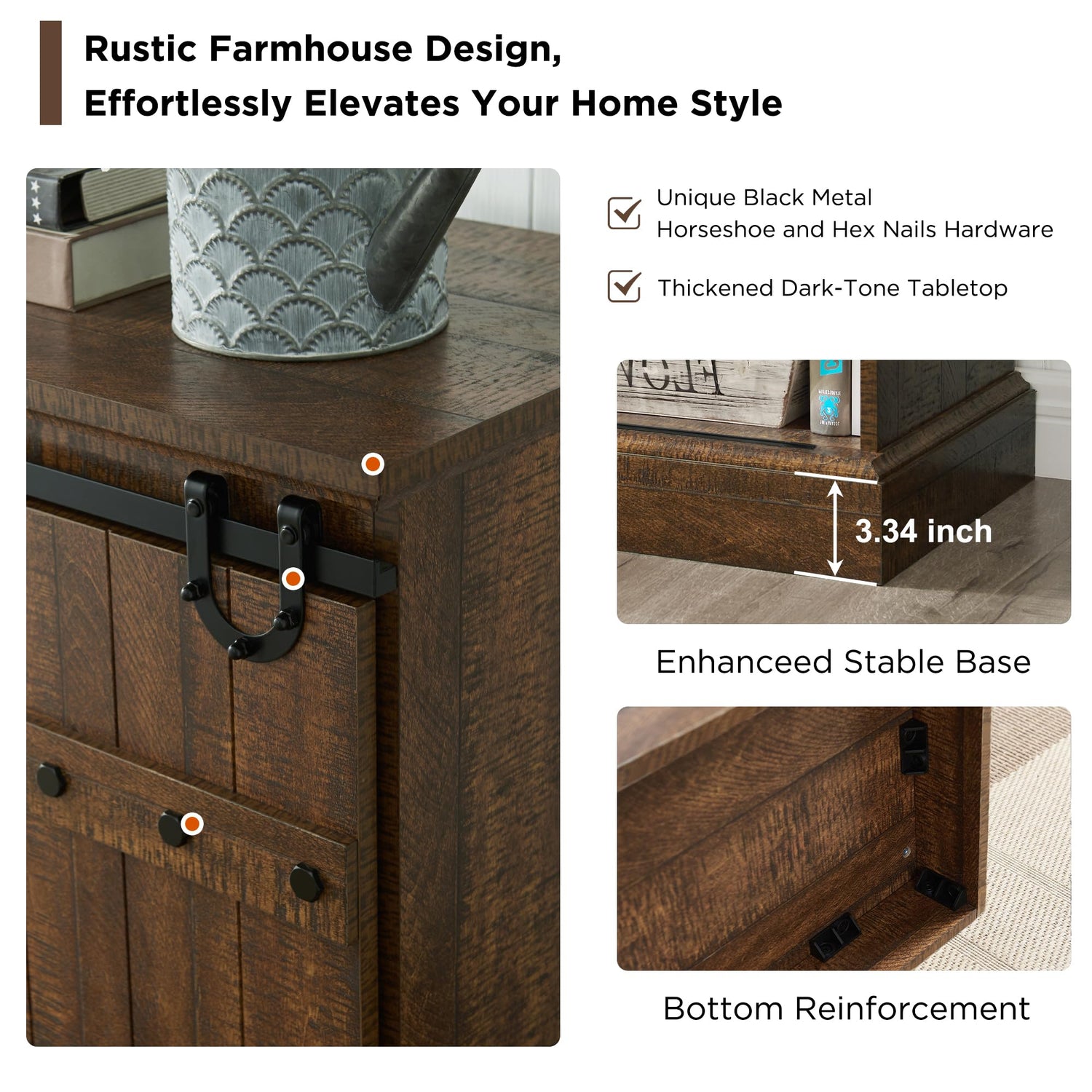 - Embrace Farmhouse Charm - Dimensions: 75"W × 32"H × 17"D, the extra long size makes it versatile and fit to TVs up to 85 inches when used as a TV stand. The table combines a reclaimed barnwood finish, delivering a naturally aged feel and creating a cozy and retro feel. Enhancing its charm: sliding barn doors with unique metal hex nail and horseshoe hardware design. Pls note that table will be sent in 2 separate packages due to its size, potentially arriving on different days.