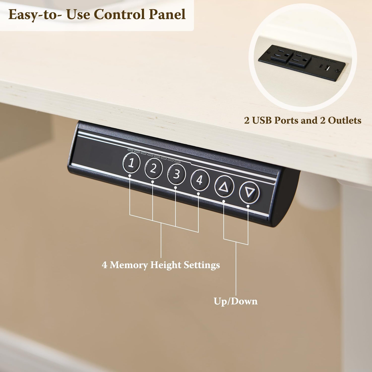 - Smooth Height Adjustment with Memory Presets: Effortlessly switch between sitting and standing with electric height adjustment from 28.4" to 45.9". Save your favorite heights with 4 memory settings—just press a button, and the desk adjusts automatically for ultimate comfort and productivity.