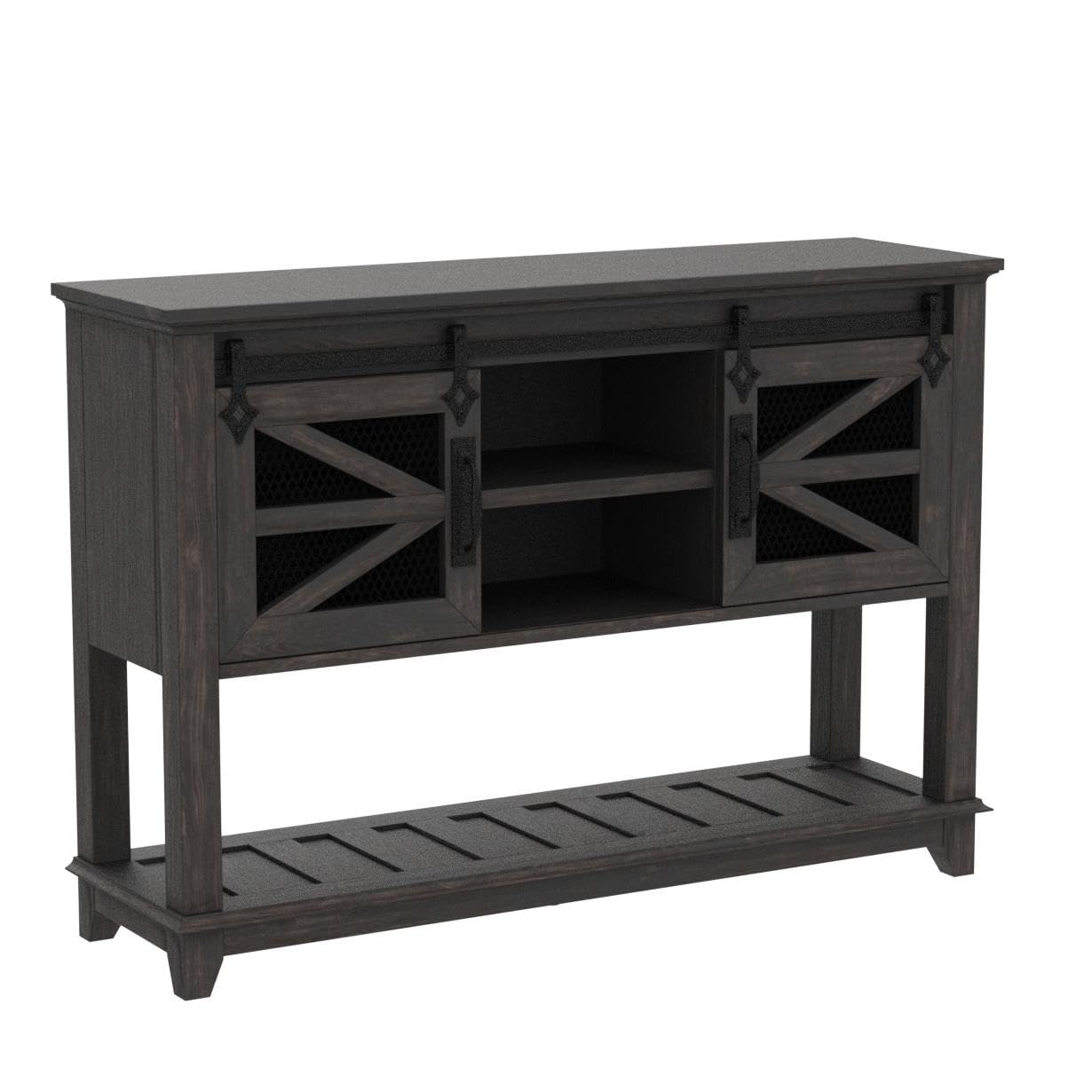 - SLIDING BARN DOORS: Featuring two removable barn doors for convenient slide and space-saving. The sliding barn doors are designed with inset metal mesh and dark iron tone hardware for added charm and aesthetic, giving the table a characteristic look. Quality slide ensures smooth slide for convenient access to cabinets while space saving. You can also choose to slide the door to any side to conceal side storage cabinets or the middle open-cubby for a clean, organized look