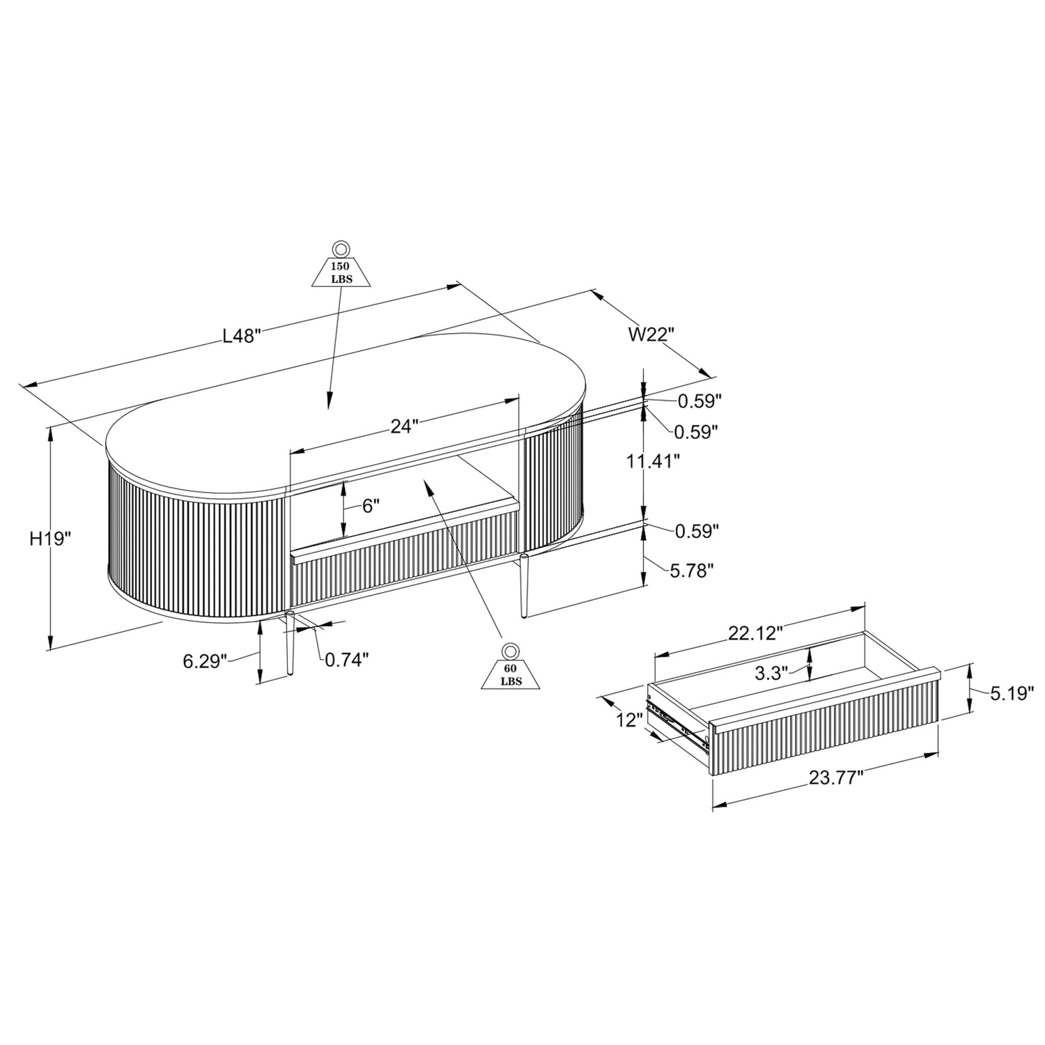 OKD Modern Luxury Fluted Coffee Table, 48" Oval Coffee Table with Drawer, Faux Marble Top, Curved Profile Design, Gold Metal Decor, Center Table for Living Room, Natural Oak