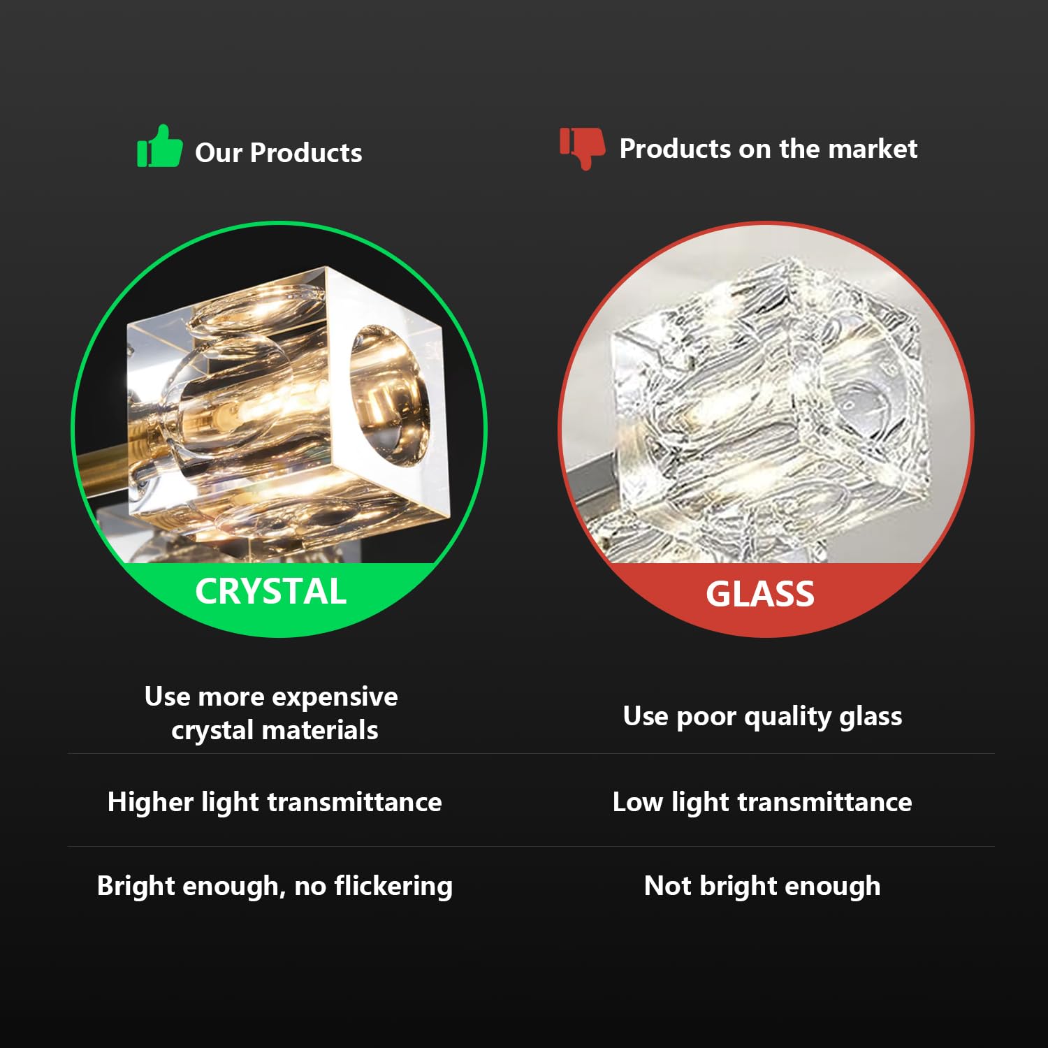 - 【K9 Crystal Material】The 8 lampshades of the ceiling light are made of clear K9 crystal, the lamp body is made of high-quality polished brass, the cube crystal lampshade is matched with G9 bulbs (bulbs are not included), and the crystal chandeliers reflects the bright light effect and projects it to the ceiling, making your home Reveals a low-key and elegant atmosphere