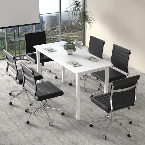 Okeysen Armless Office Desk Chair, Mid Back Ergonomic Swivel Conference Room Chair, Adjustable Height PU Leather Home Desk Chair, Modern Small Rolling Computer Task Chair, Black