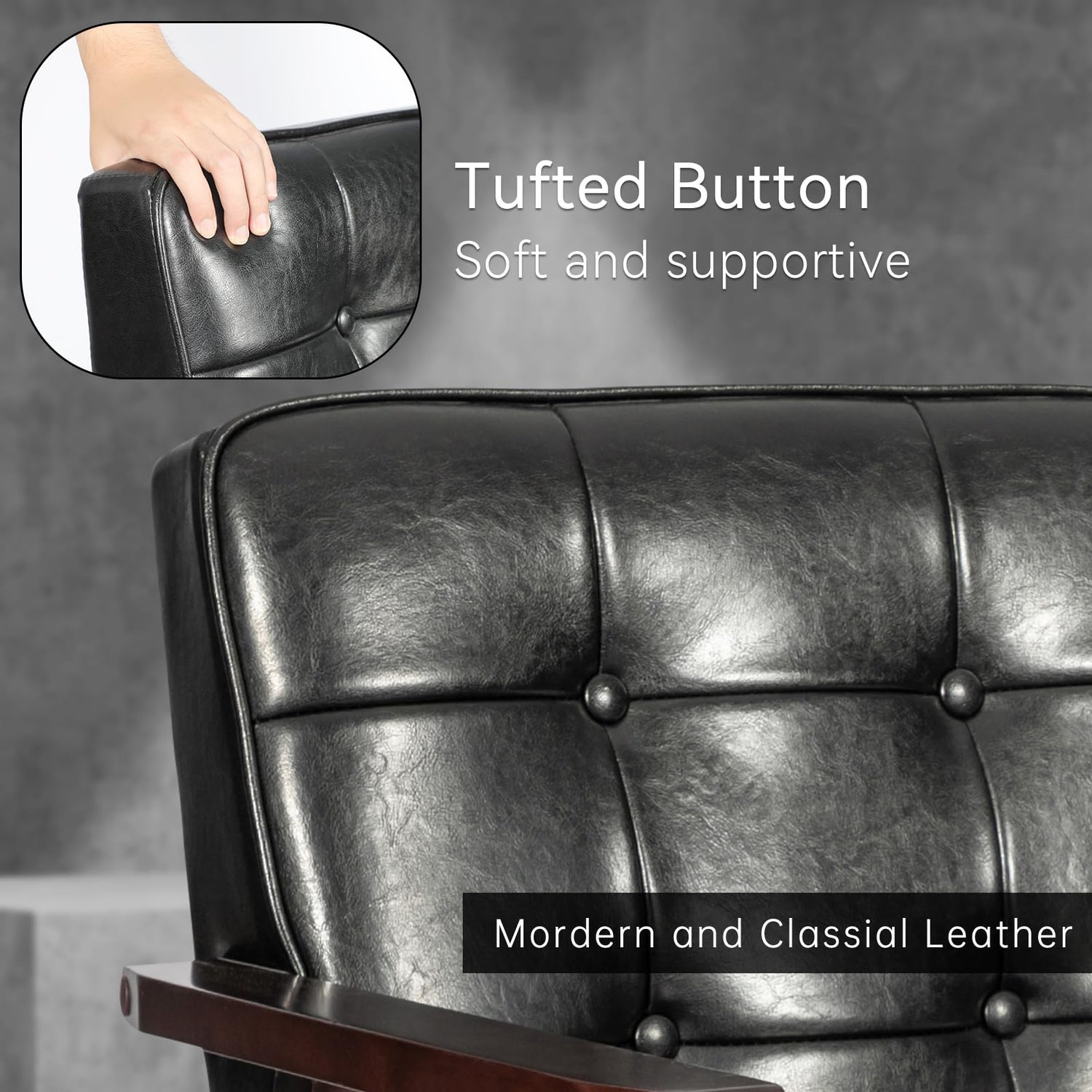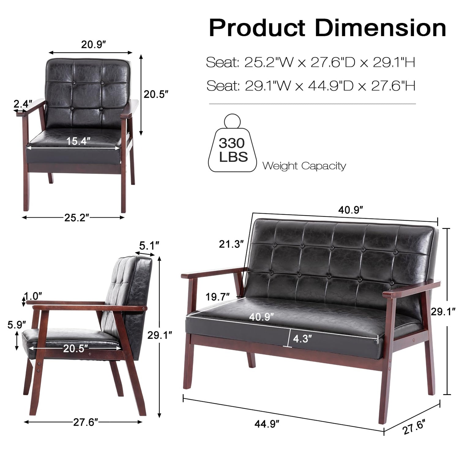- 【Modern Retro Design】Mid-Century Retro Modern upholstered loveseat sofa set, classical leather and solid wood armrests, combined with button-tufted design, perfect addition to the living room, bedroom, waiting room, guest room.