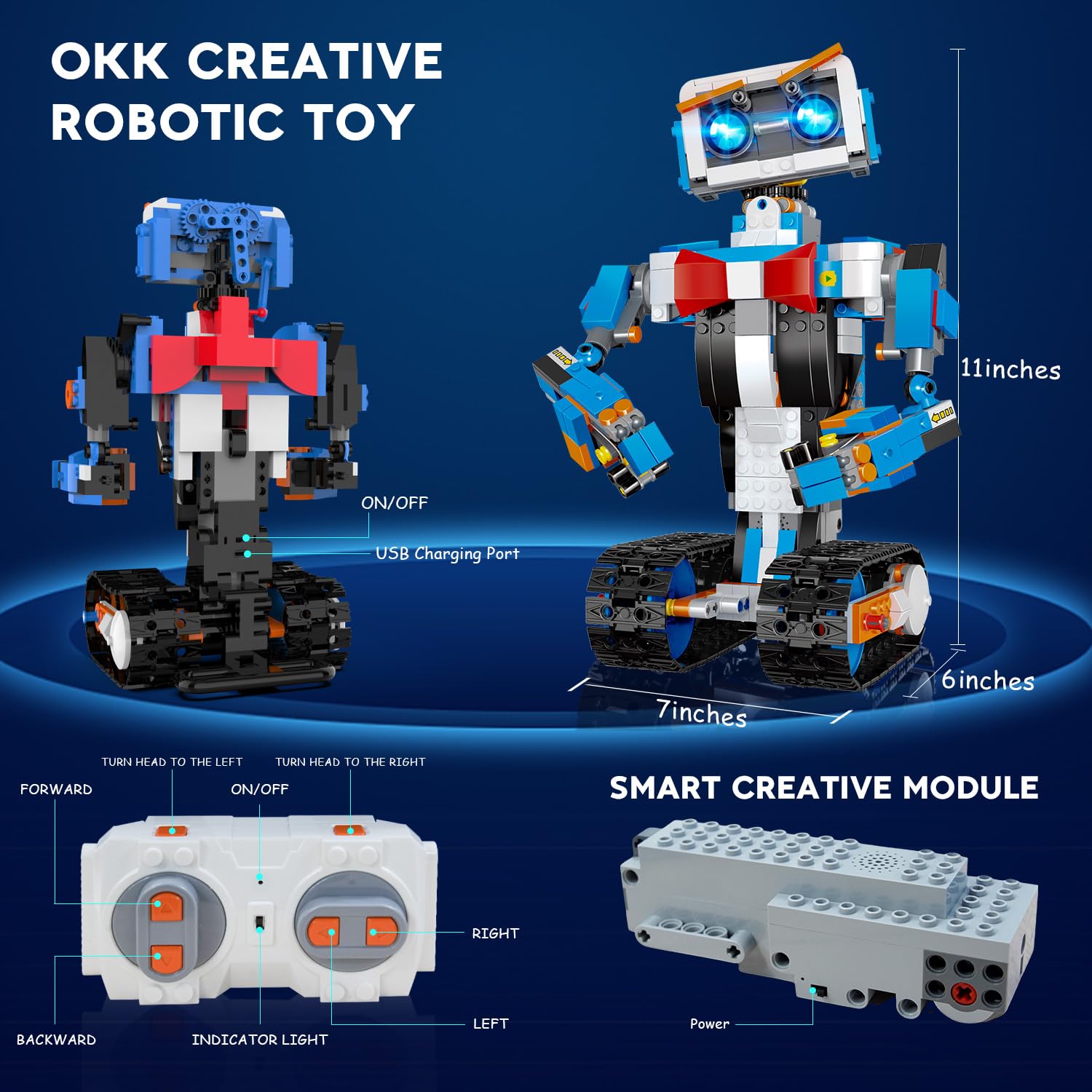 - EDUCATIONAL ROBOT STEM TOYS: OKK robot kit for kids 8-12 is not only a robot robot building blocks, but also an learning and education toys kit, perfect for boys and girls to practice their hands-on skills and creativity. The educational STEM toys helps to boost children’s mental health, widen their imagination, foster curiosity, enhances children's ability of hand-eye coordination, color recognition, counting, sorting, spatial, logical thinking and problem solving while assembling the toys