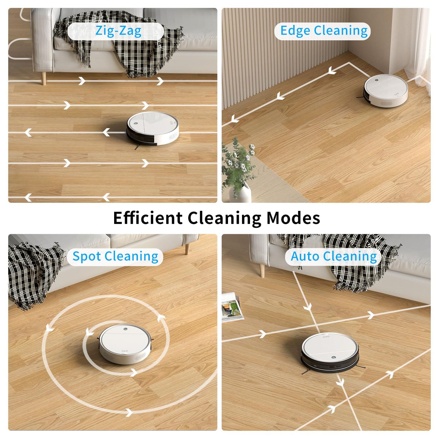 - 【4 Efficient Cleaning Modes】This robotic vacuum cleaner can switch between 4 cleaning modes - Auto, Spot, Edge, and Zigzag - flexibly via remote control or an app. You can customize the cleaning program for better cleaning results. The noise level is below 56dB, ensuring it won't disrupt your daily life in any mode.