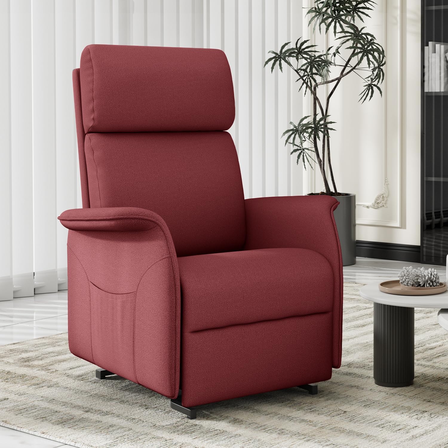 OKUP Power Lift Recliner Chair with Massage and Heat for Elderly, Electric Recliner Chairs for Adults with Side Pocket Remote Control, Infinite Position, Fabric (Burgundy)