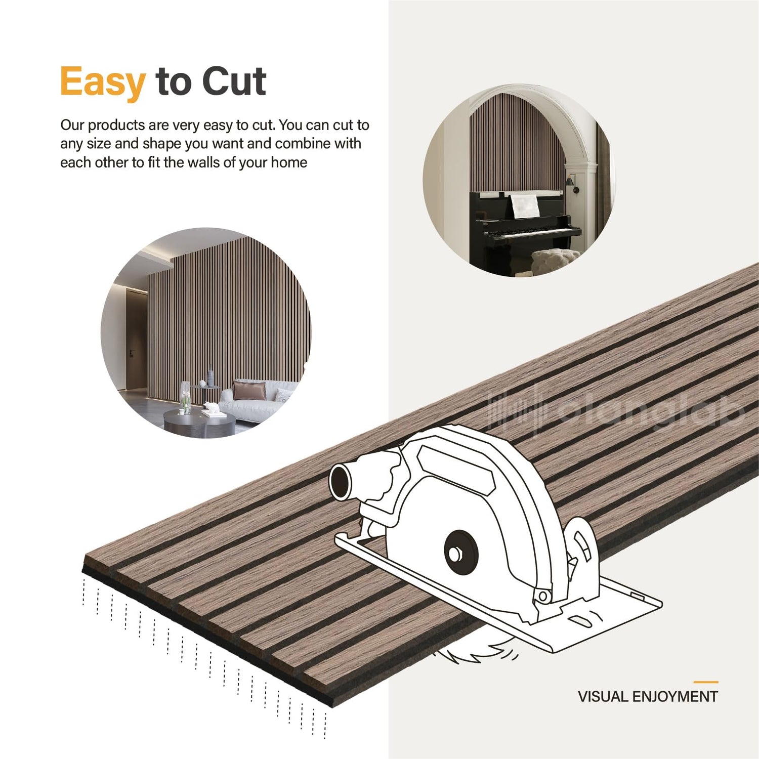 - Recyclable Material: Olanglab wood 3D wall panels consist of MDF slats and acoustic felt backing, they are made of recyclable and reusable materials that contribute to promoting sustainability.
