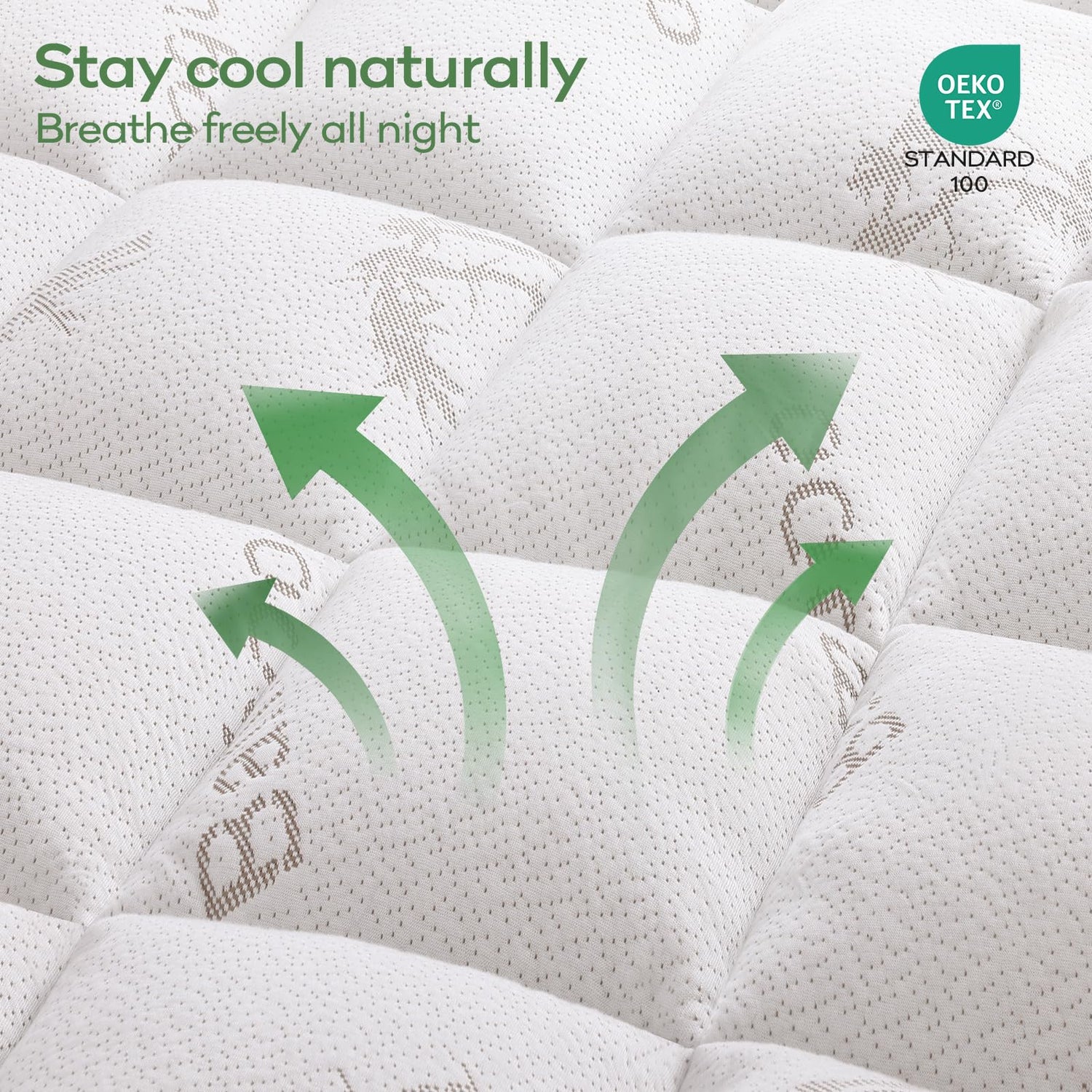 - COOLING AND BREATHABLE BAMBOO VISCOSE FABRIC - Made with cooling bamboo fabric, this breathable mattress topper full keeps you dry and comfortable. A top pick for hot sleepers seeking a cooling mattress topper that stays fresh all night.