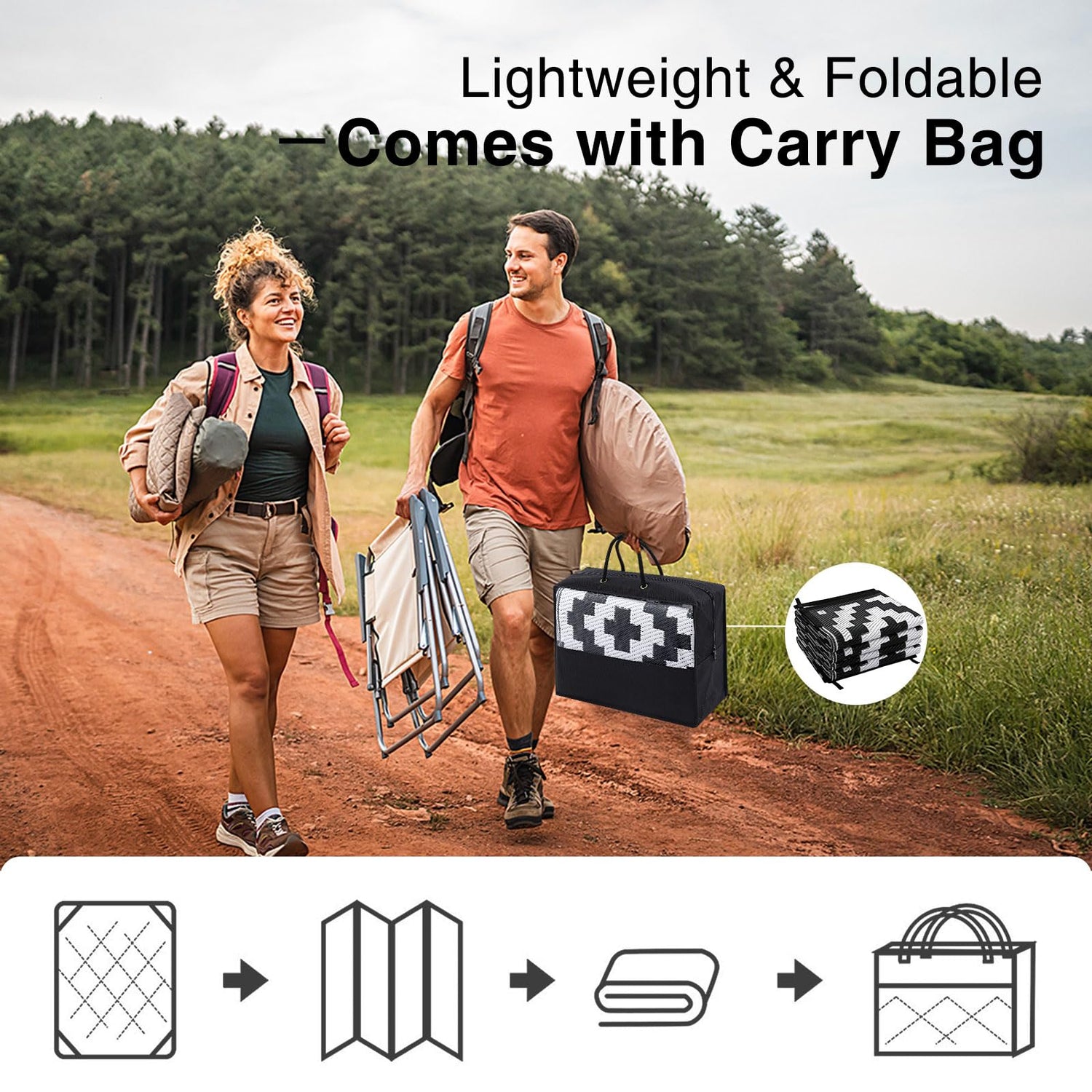 - Lightweight & Portable: Designed for ultimate portability, this lightweight camping rug is easy to fold and carry, making it the perfect companion for camping, picnics, and other outdoor adventures. Take it along to your next outdoor event without the hassle of heavy or bulky mats.
