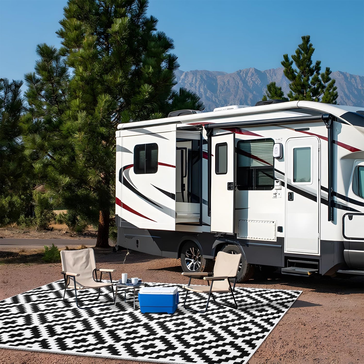 - Reversible & Versatile: Featuring a modern geometric pattern on both sides, this reversible patio rug allows you to instantly refresh your patio, porch, backyard, deck, RV campsite, or any outdoor area with a quick flip. It’s a simple way to switch up your style and adapt to changing seasons.