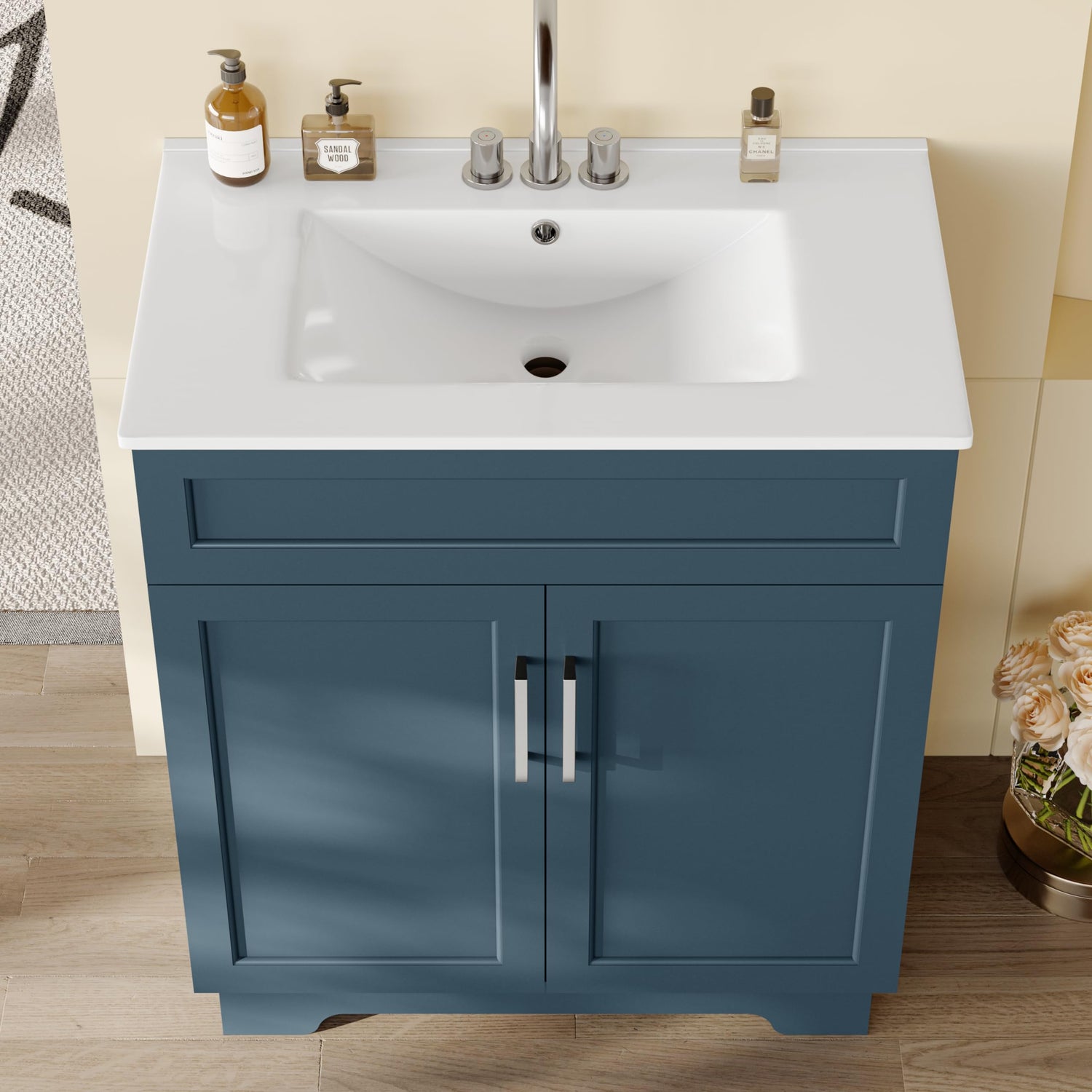 - 【Upgraded Bathroom Vanity】The bathroom vanity with ceramic sink has been expanded to 30 inches with a larger ceramic sink and storage space. The double door bathroom vanity is the best choice to refresh your bathroom!