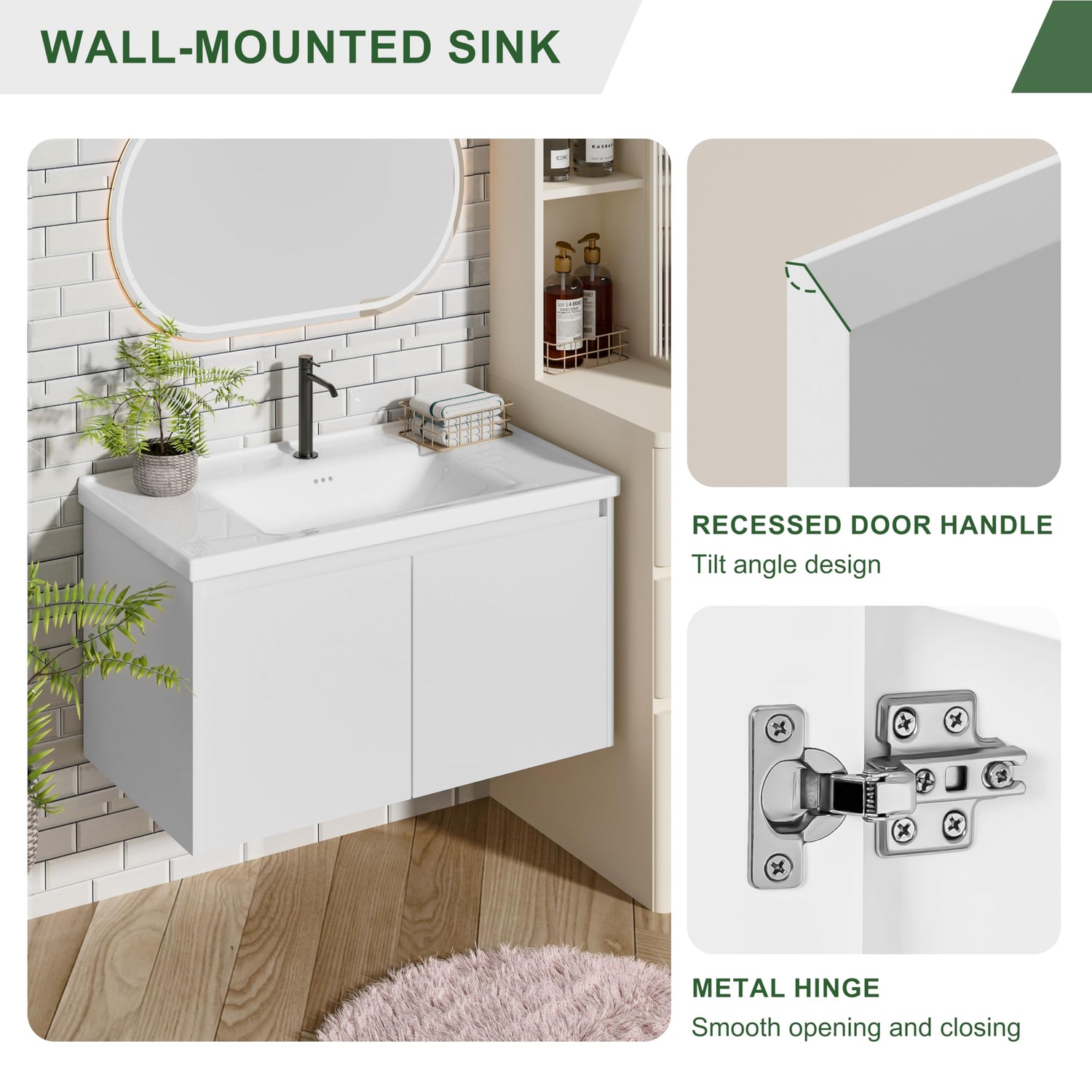 OLD CAPTAIN Bathroom Vanity with Ceramic Sink, 36 Inch Wall Mounted Bathroom Floating Vanity, Bathroom Sink Vanity with 2 Doors, Bathroom Vanity Cabinet, White