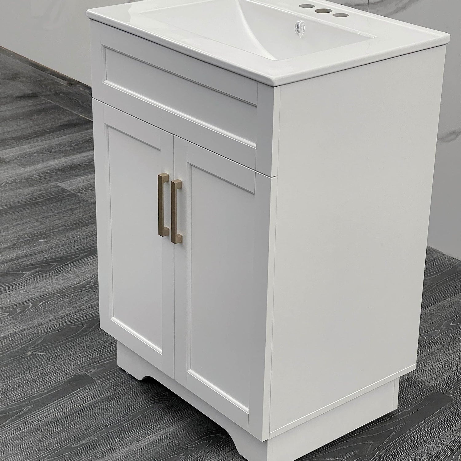 OLD CAPTAIN Bathroom Vanity with Ceramic Sink, Wooden Double Door Bathroom Storage Vanity with 24 Inch, Small Quick Assembly Bathroom Cabinet
