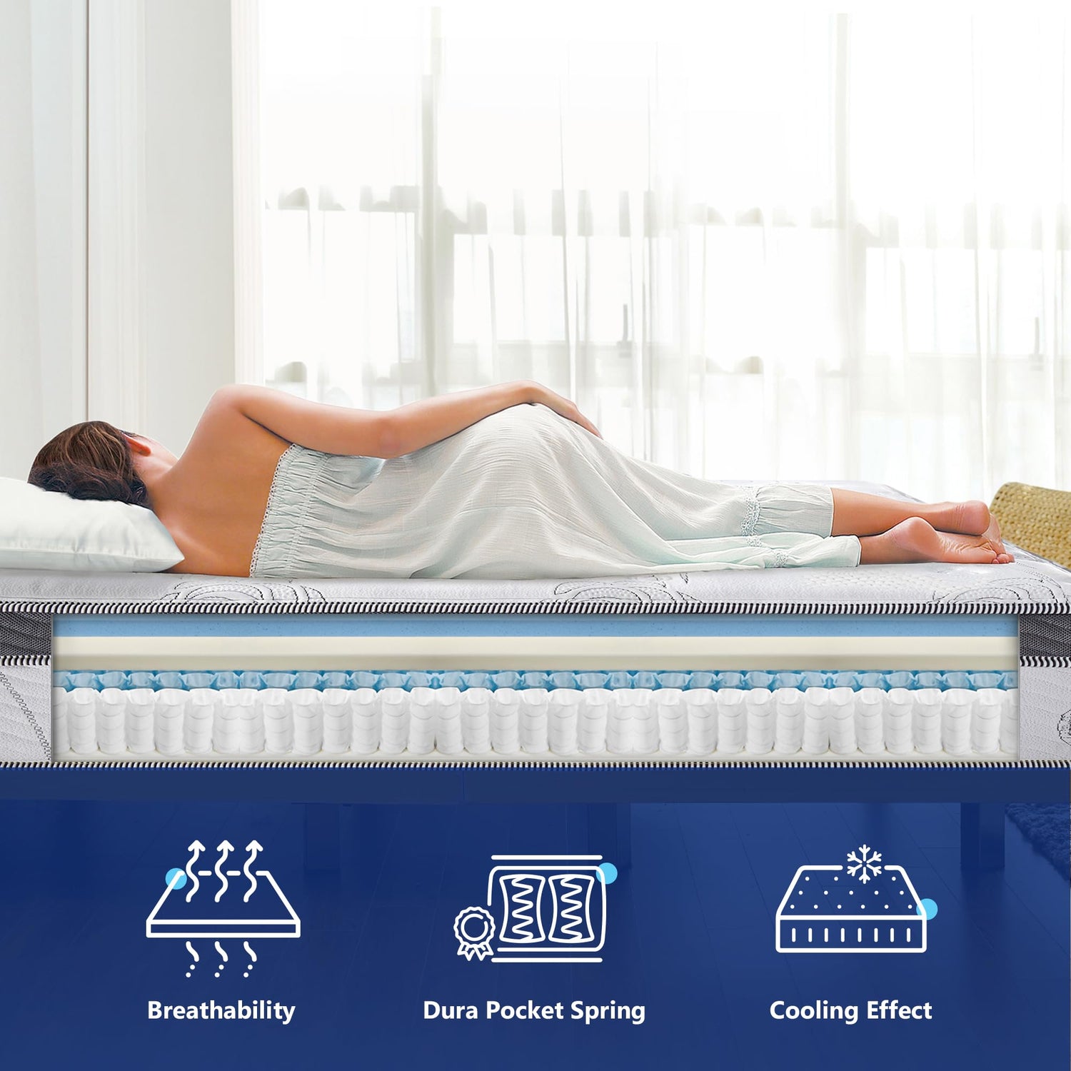 - [ 5 Layers ] - 2" High Density Foam + 1" Cooling Gel Memory Foam + 2" High Density Foam + 7.5" Pocket Springs + 0.5" High Density Foam