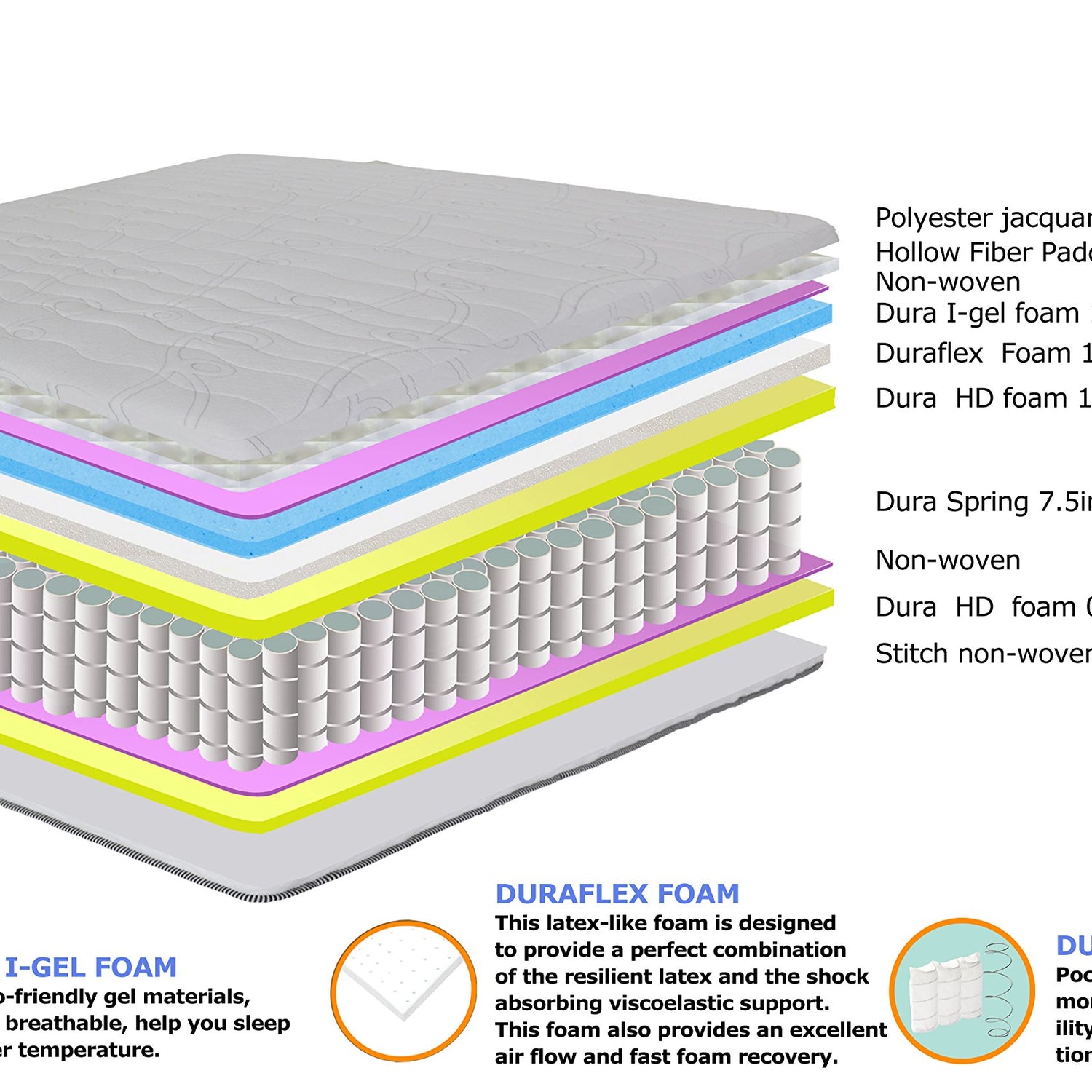 - [ 4 Layers ] - 0.75" Cooling Gel Memory Foam + 1" High Density Foam + 7.5" Pocket Springs + 0.25" High Density Foam
