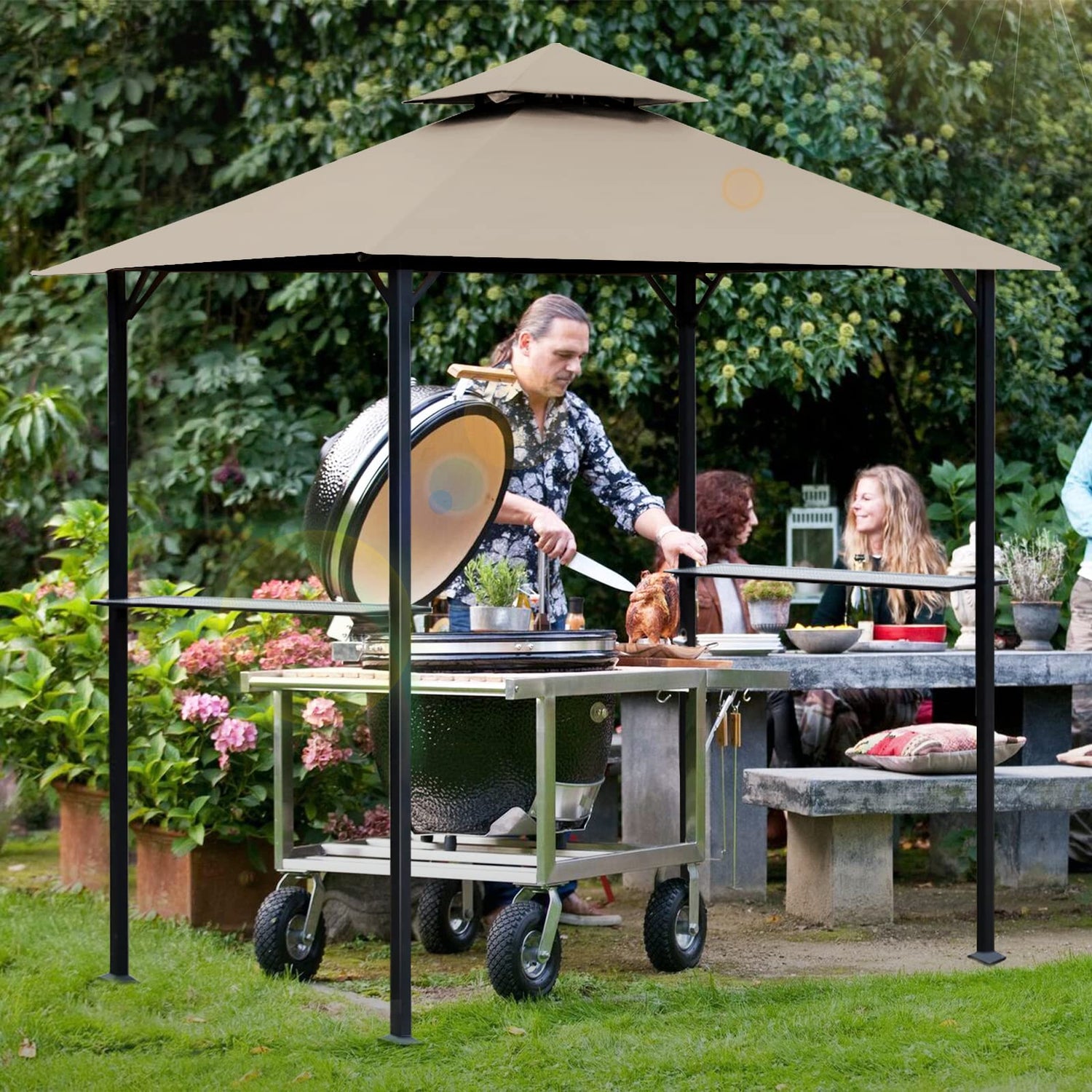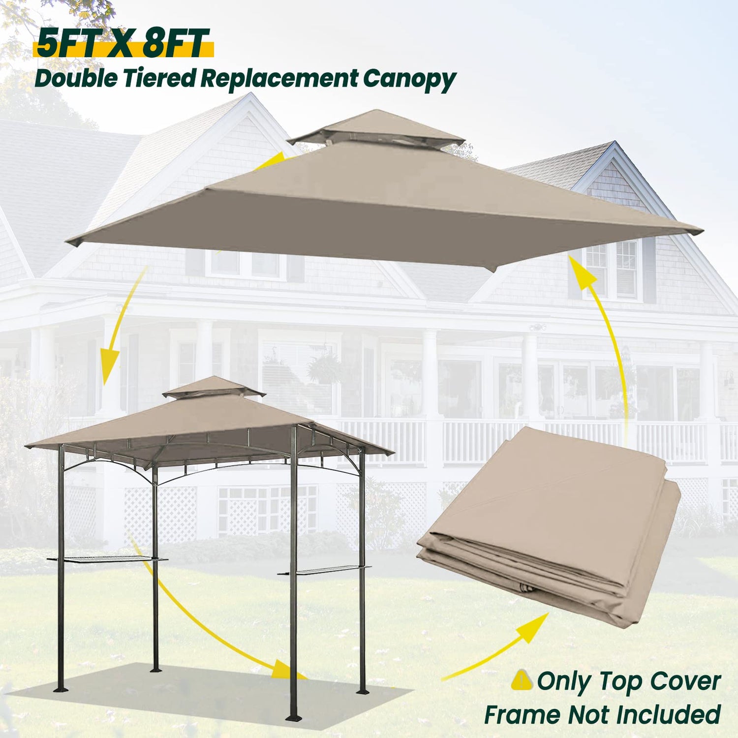 OLILAWN Grill Gazebo Replacement Canopy Roof, 5' x 8' Outdoor BBQ Gazebo Canopy Top Cover, Double Tired Grill Shelter Cover with Durable Polyester Fabric, Fit for Model L-GG001PST-F, Beige