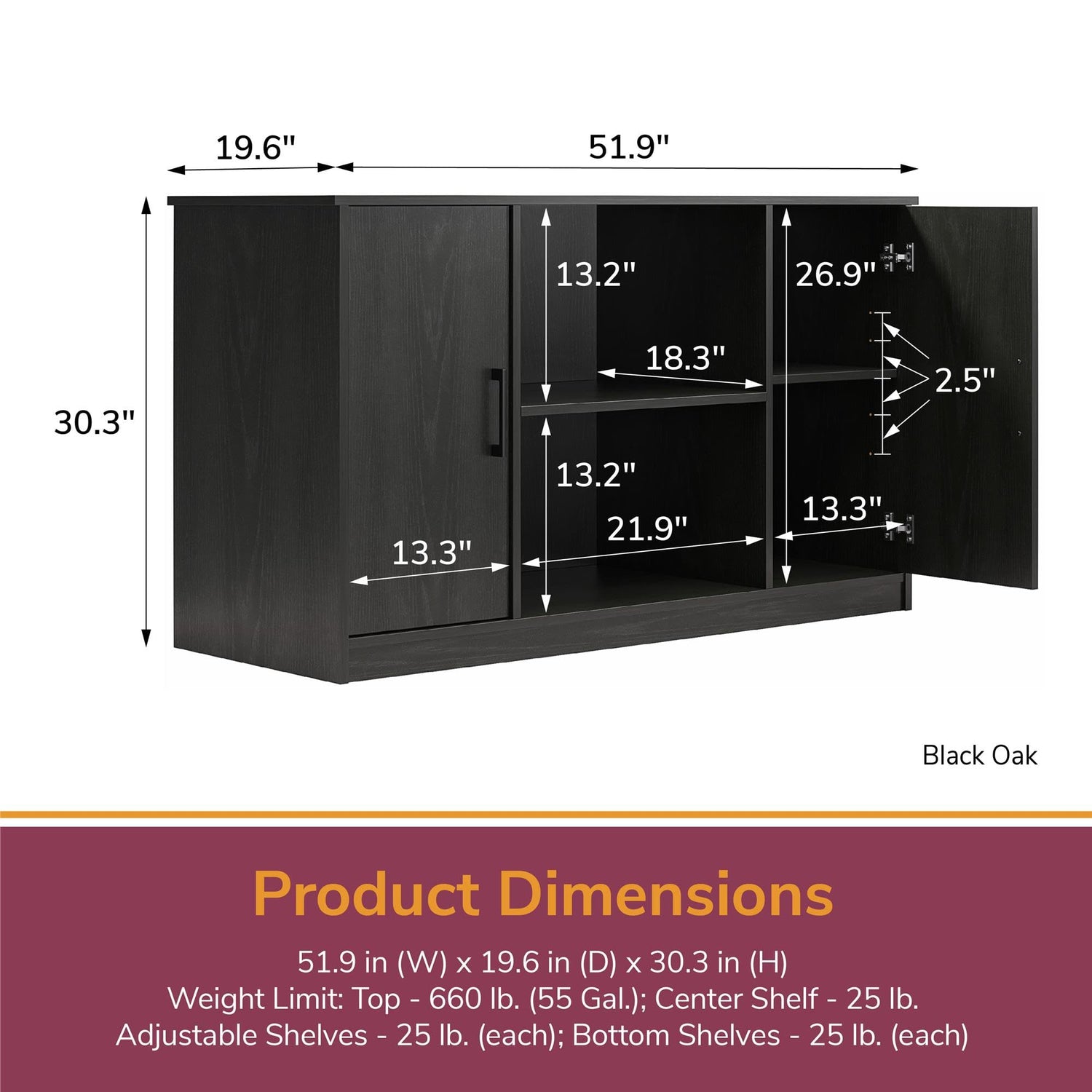 Details: Designed with both your finned and leafy companions in mind the Ollie & Hutch Dory 55 Gallon Aquarium or Terrarium Tank Stand is a functional marvel. Its six sections offer a harmonious blend of open and closed storage, allowing you to organize nets, food, and all the essential accessories for your aquatic or terrarium friends with ease. Crafted from sturdy engineered wood, the top of this stand is a true heavyweight champion, effortlessly supporting up to 660 lbs. So, whether you're curating an underwater haven for vibrant fish, majestic turtles, or lush aquatic plants, or nurturing a terrarium ecosystem teeming with exotic insects and luxuriant greenery, this stand stands up to the task. Note: Tank not included, but the possibilities are endless! The Stand ships in one flat box and requires assembly. Two adults are recommended to assemble. Assembled measurements: 30.32 in. H x 51.97 in. W x 19.55 in. D.