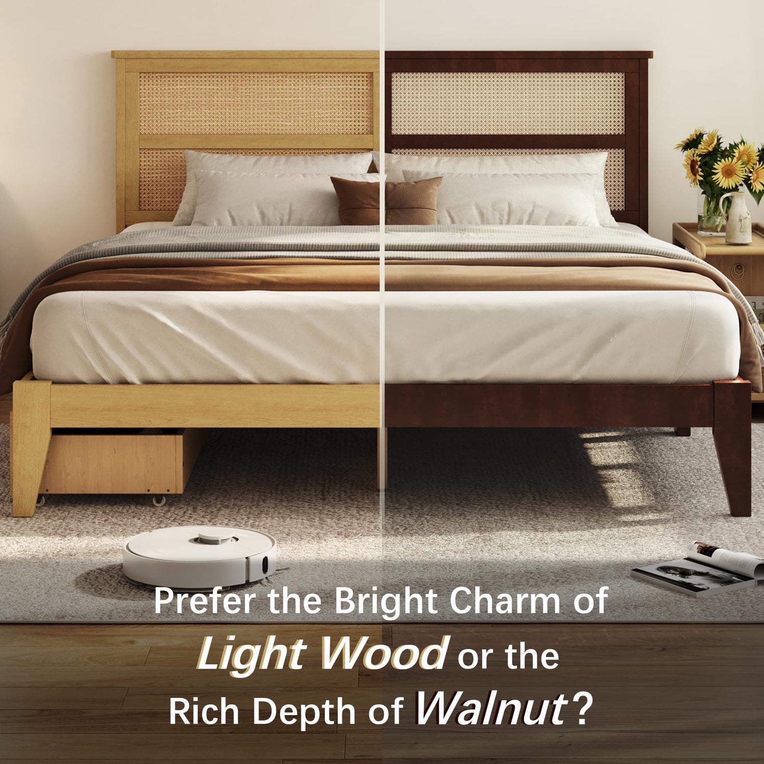 - "Prefer the Bright Charm of Light Wood or the Rich Depth of Walnut?": This bed frame offers two stunning options—a lively light wood tone for a fresh, airy feel, or a deep, sophisticated walnut shade for a bold, grounded presence—tailored to your unique style.