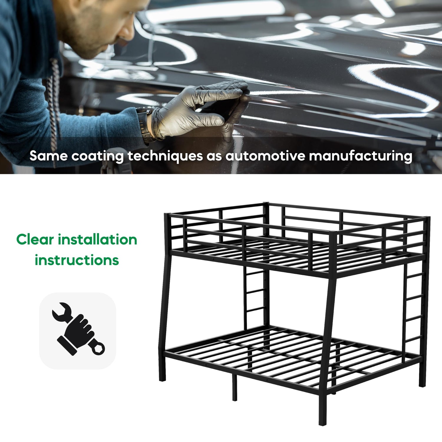 - “20% Higher Guardrails”: Featuring guardrails 20% higher than standard beds, it keeps your child stay in bed all night, even during restless sleep. The bed frame is coated using the same electrostatic powder coating technology as in automotive painting, ensuring long-lasting protection from rust and wear, while maintaining a polished, durable finish.