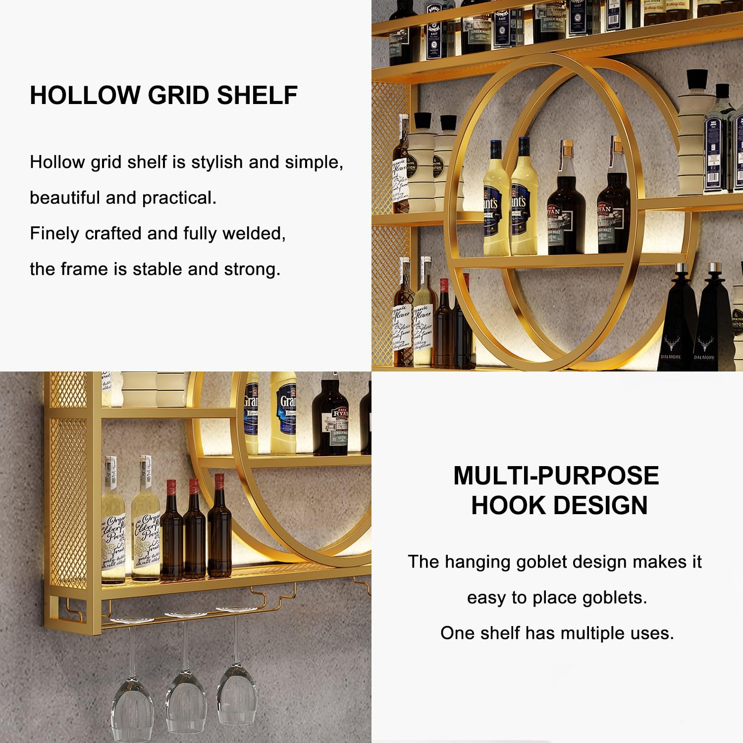 - High-quality Wine Rack: The bar shelves wall mounted are made of premium thickened iron materials, good gloss, no rust, no deformation, strong and stable, strong bearing capacity. We recommend securely installing this wall-mounted wine rack onto a solid wall. Each layer can support a weight of up to 110 pounds (50KG)