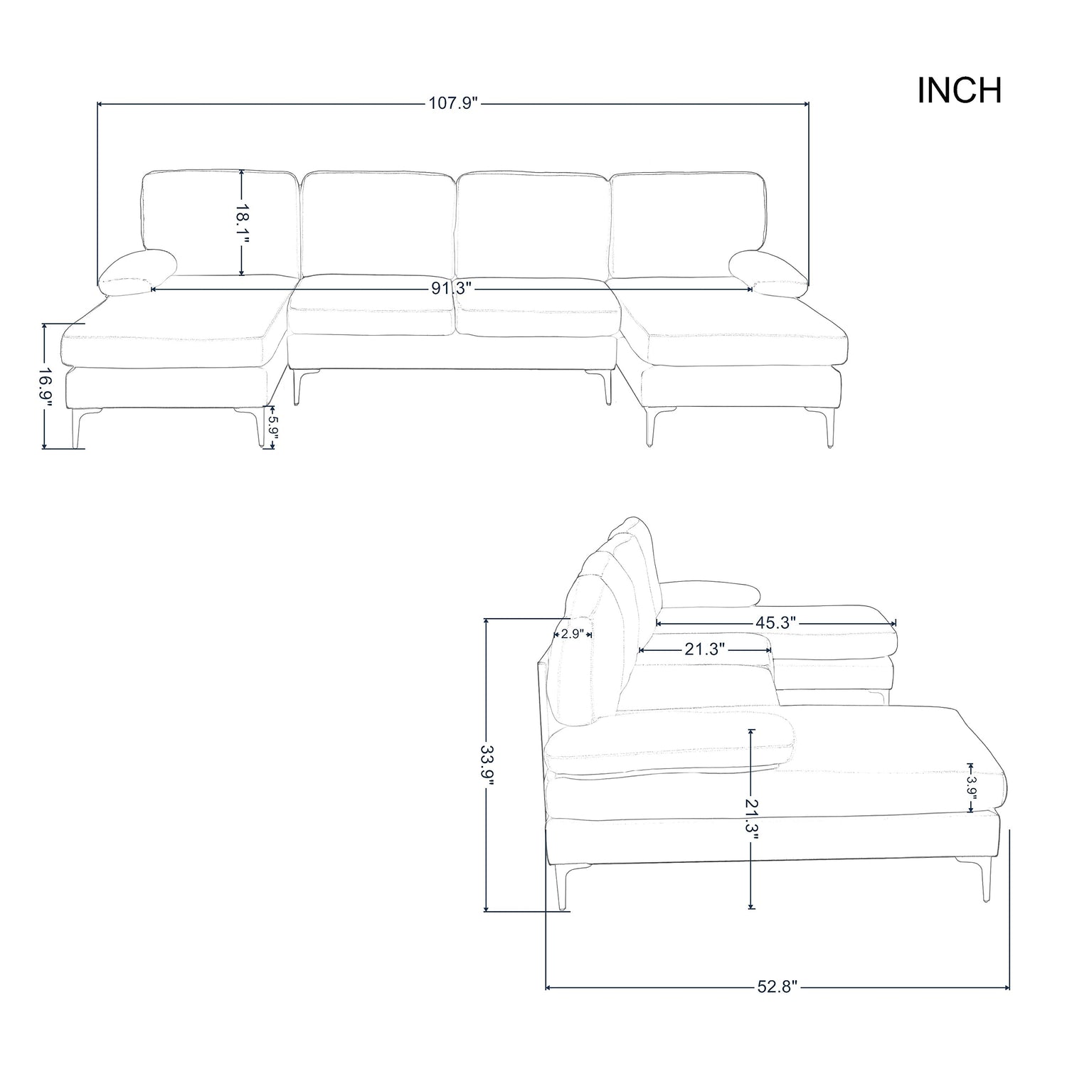 Details: "107.9” U-Shape Sectional Sofa. Sofa and double chaise, the modern design sectional sofa meets all your decorating needs, sink into this sofa chaise and enjoy a relaxing time at home or office.