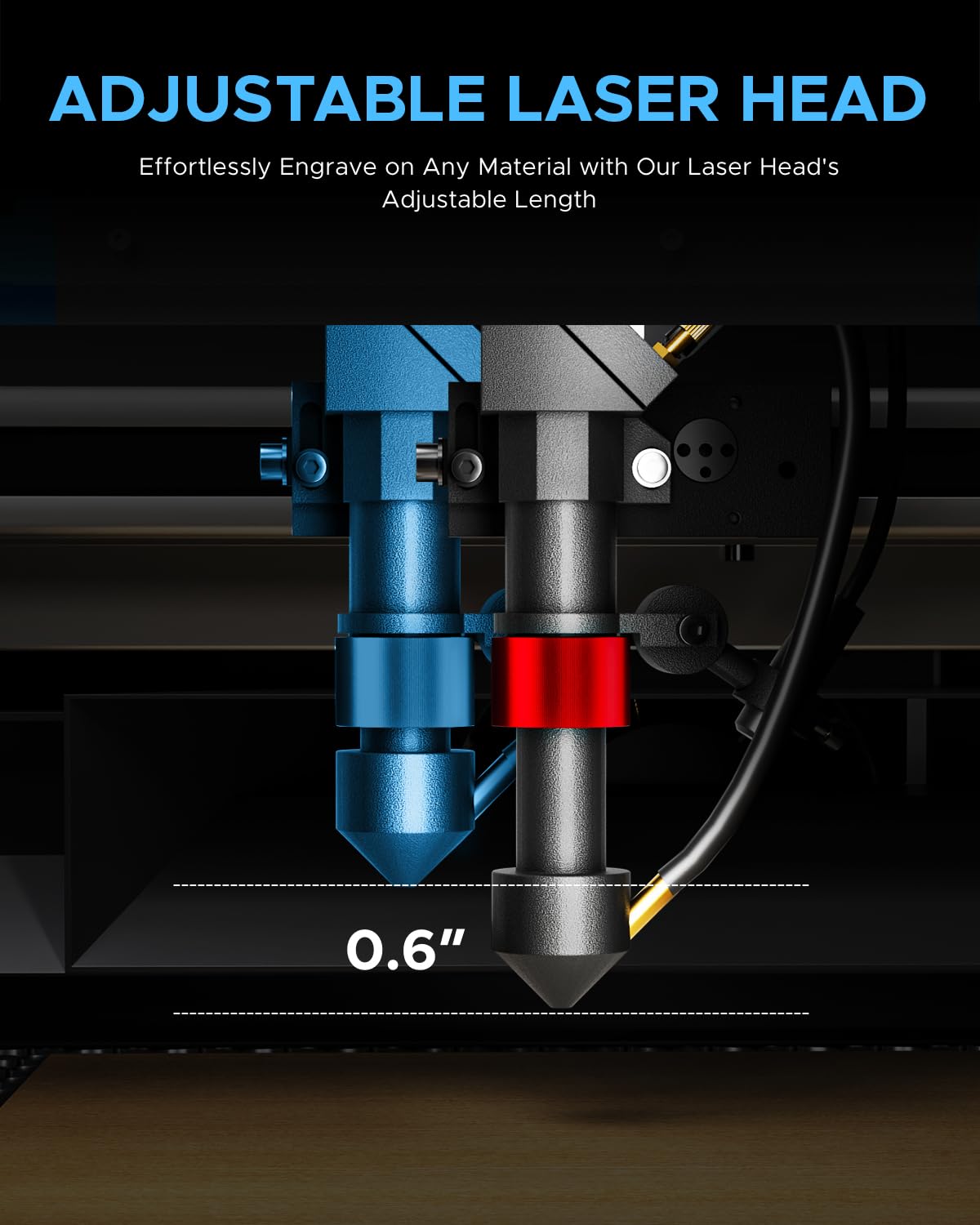 - Integrated Air Assist System: The advanced 45° air assist feature enhances engraving and cutting quality by removing smoke and debris, keeping the lens clean. This innovation improves cutting precision while also minimizing fire risks during operation