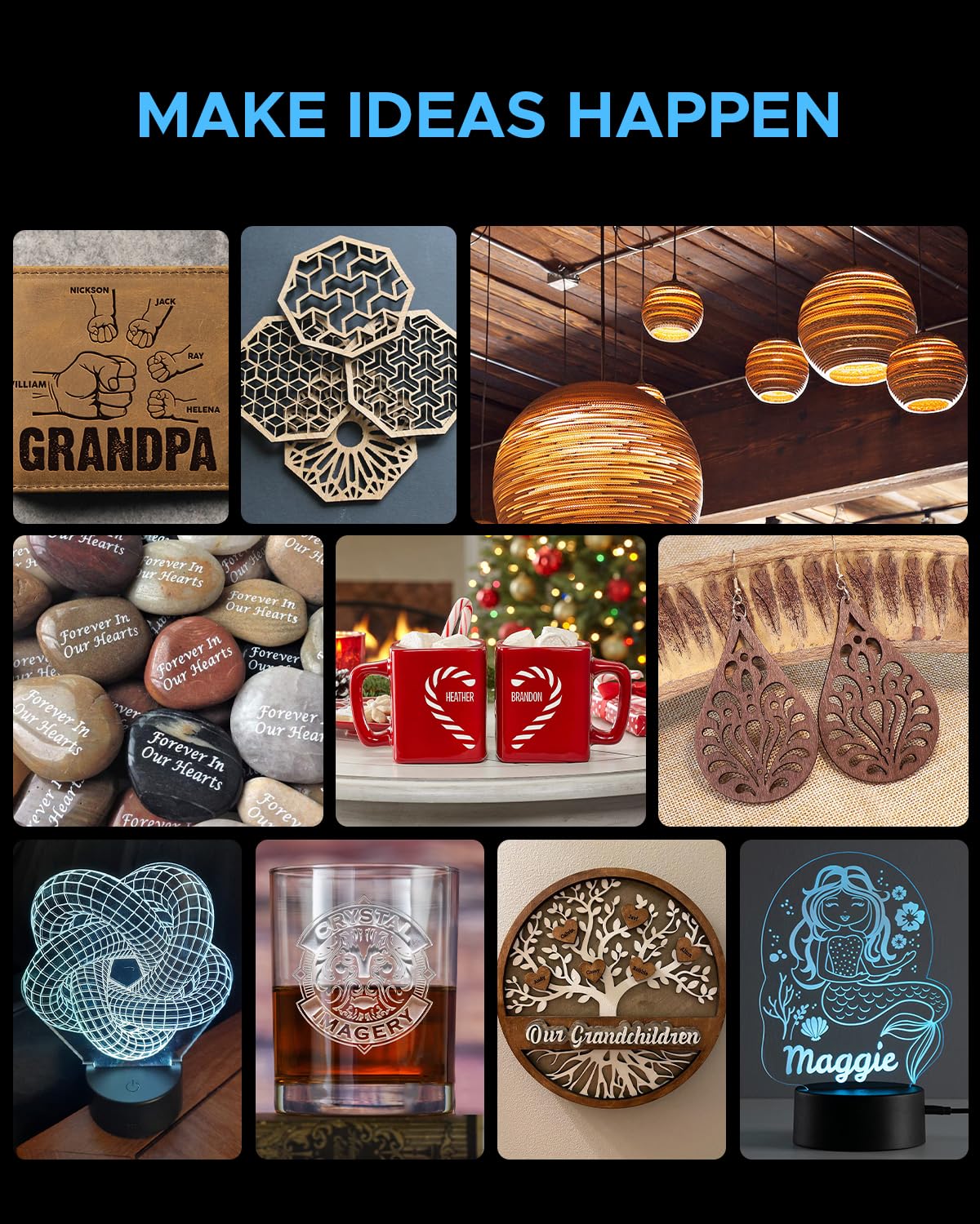 - Powerful 40W Laser Efficiency: Our laser cutter delivers 40W output, cutting through 0.4" acrylic at 0.12"/s, 0.2" wood at 0.2"/s, and single-layer leather at 0.6 in/s. Ideal for both personal and professional projects, enhancing productivity and precision